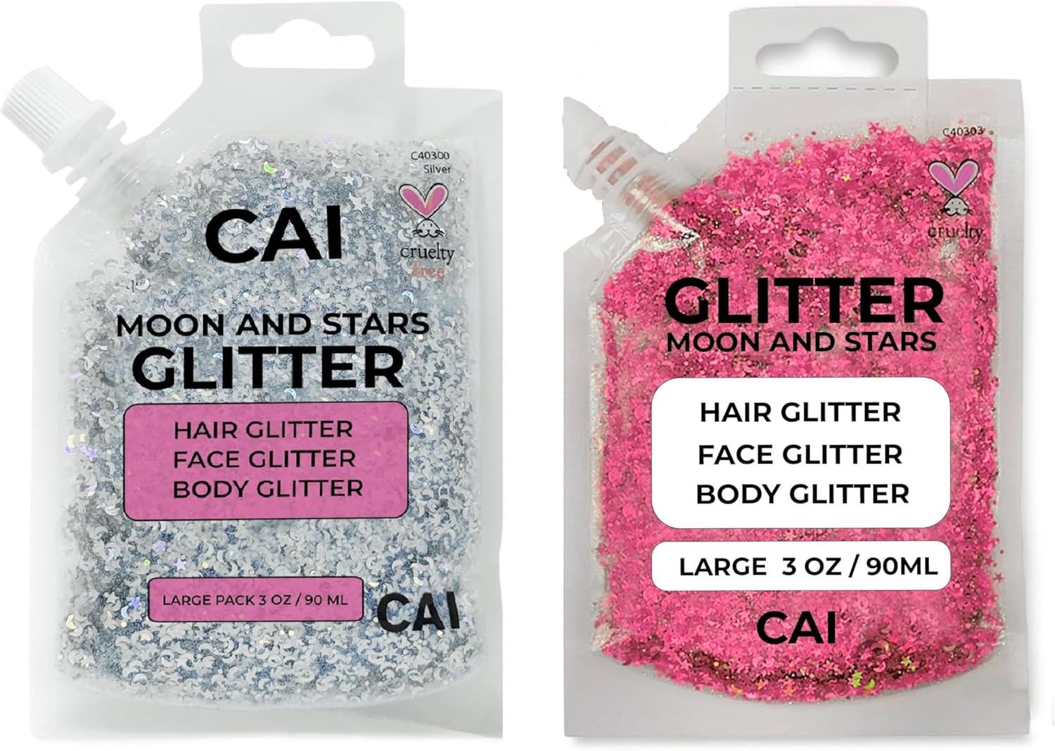 • Face Glitter Gel That Pops: Shine bright with bold face glitter featuring moon and star shapes in a chunky, holographic mix. Easy to blend over cheeks and eyes, it’s ideal for Halloween makeup glitter, raves, or cosplay without irritation or fallout.