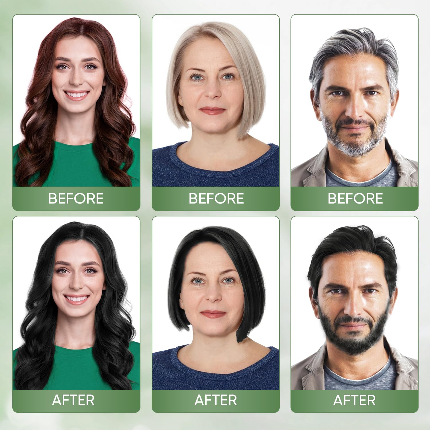 Dark Tea Hair Dye Shampoo for Women & Men, Gray Coverage Herbal Natural Ingredients 3 In 1 Color Shampoo
