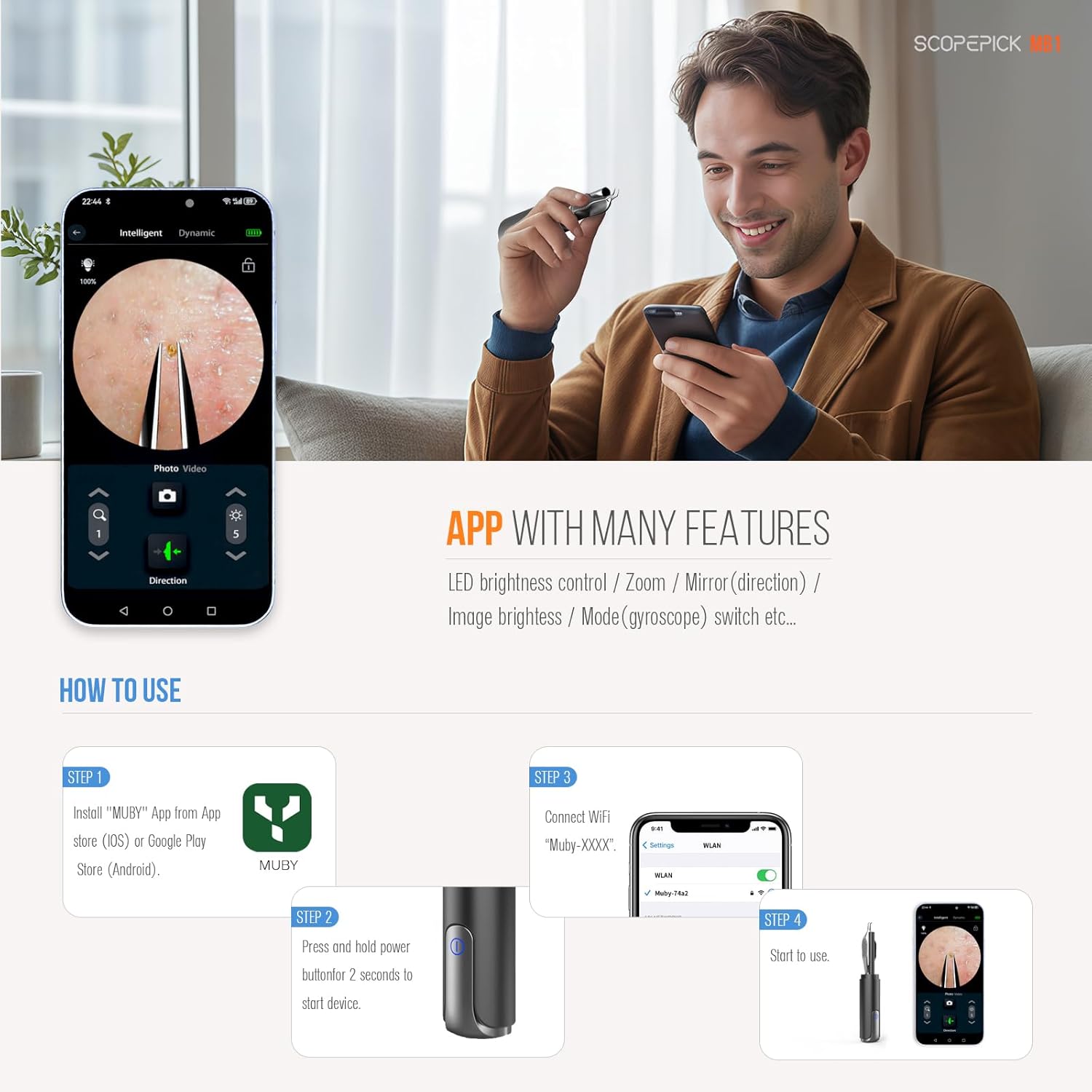 - Precision-Engineered Tweezers: Designed with a built-in 1080p camera for ultimate accuracy and control when removing blackheads, ingrown hairs, or shaping eyebrows.