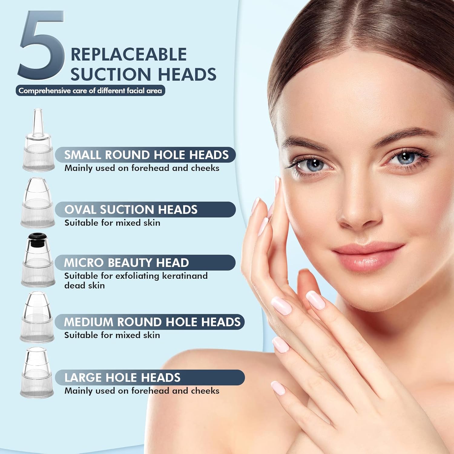 - 🌹 Adjustable Suction Levels: With five different suction levels, it can be used on different skin types and conditions. Levels 1-3 are suitable for sensitive, dry, and normal skin, while levels 4-5 are designed for mixed and oily skin.