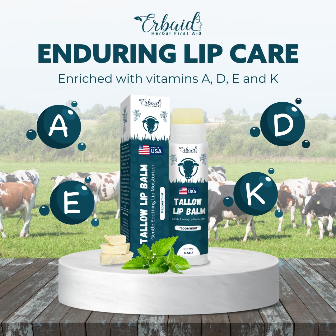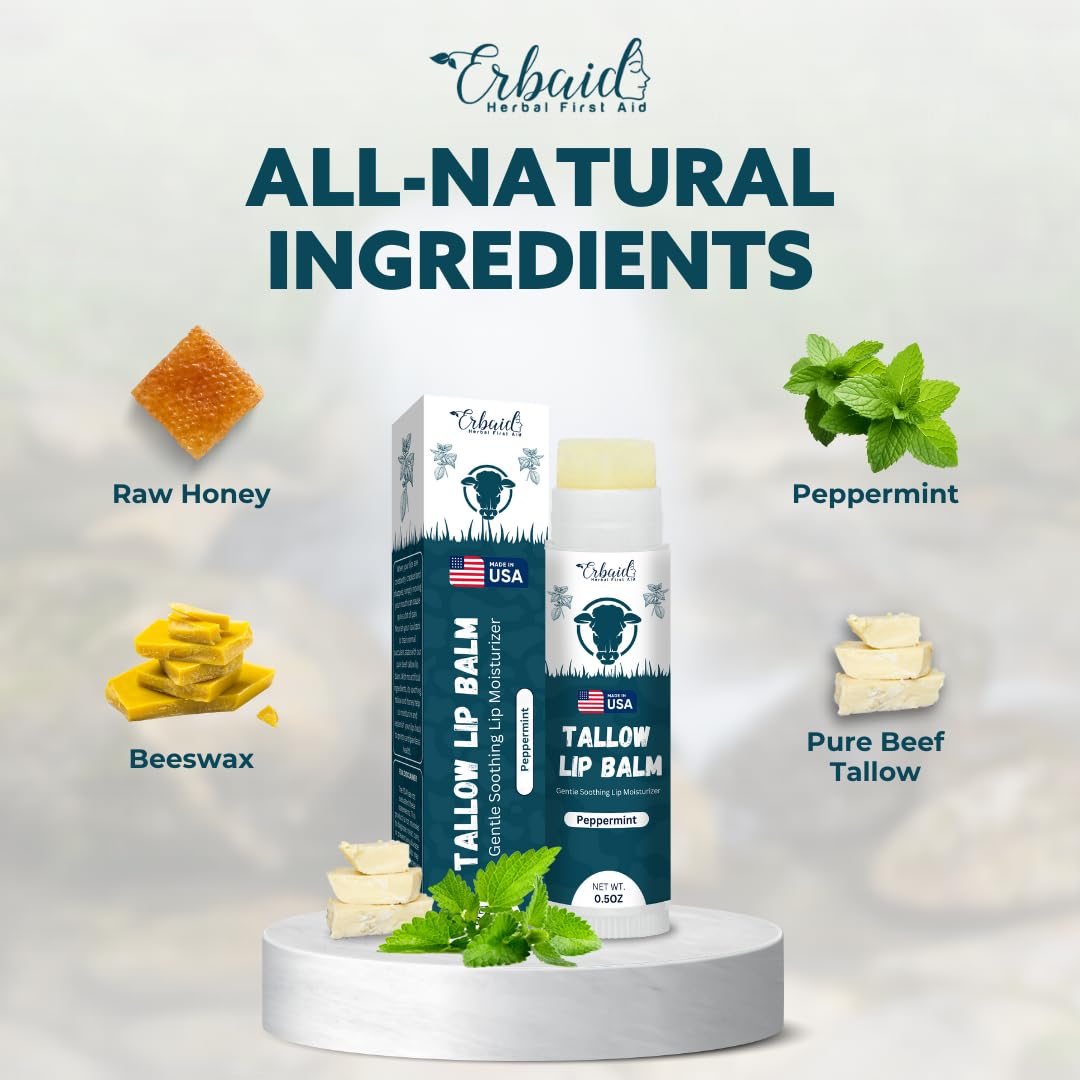 • INTENSELY HYDRATING FORMULA: Immerse your lips in moisture with our grass-fed organic beef tallow lip balm with peppermint flavor. Crafted with natural fats, akin to those in human skin, it maintains your lips' moisture barrier for enduring hydration and velvety softness.