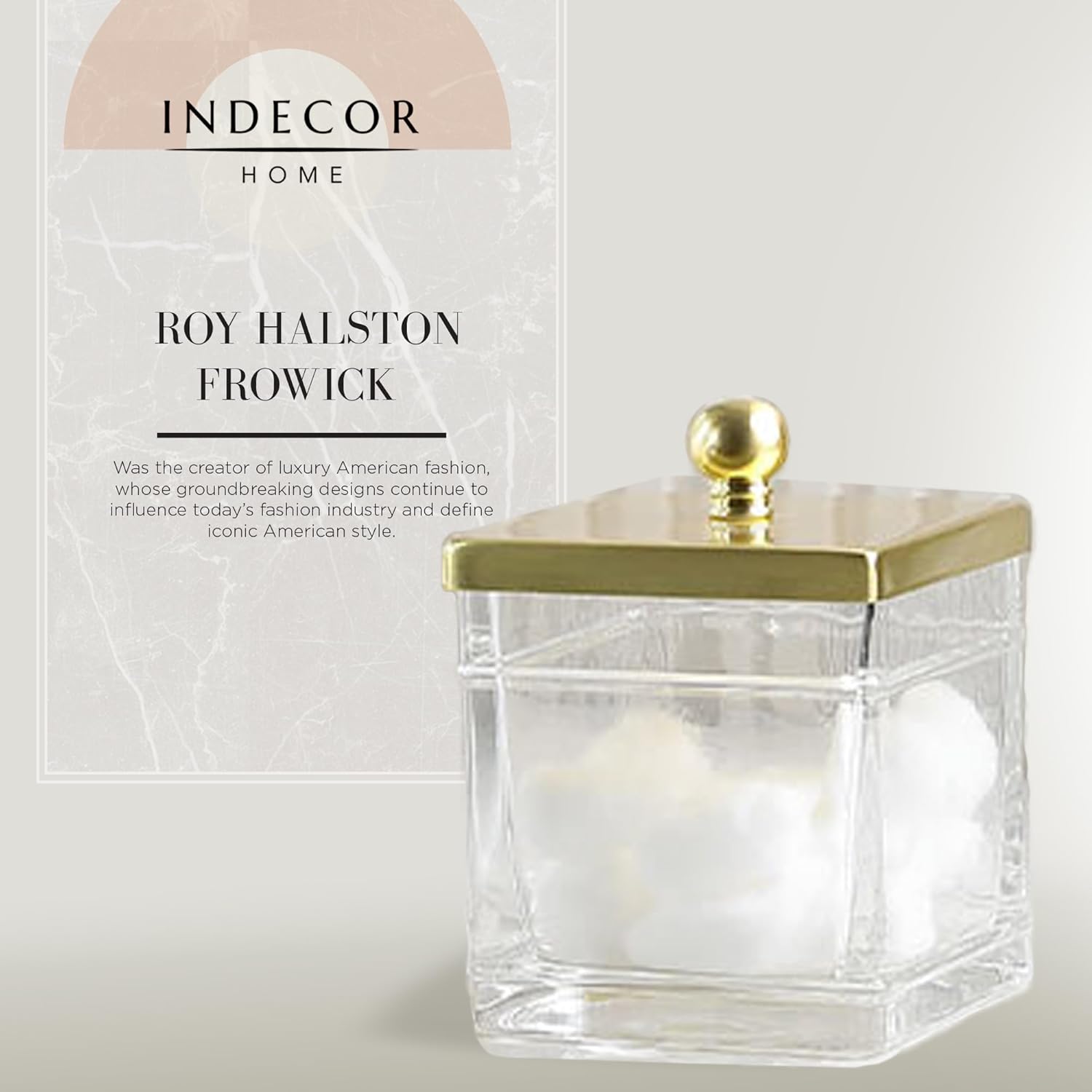 Apothecary Glass Cotton Jar Holder Brushed Gold Stainless Steel Lid, Elegant Bathroom Storage Canister for Qtips, Cotton Balls, Floss, Makeup Organizer, Vanity Bathroom Organization