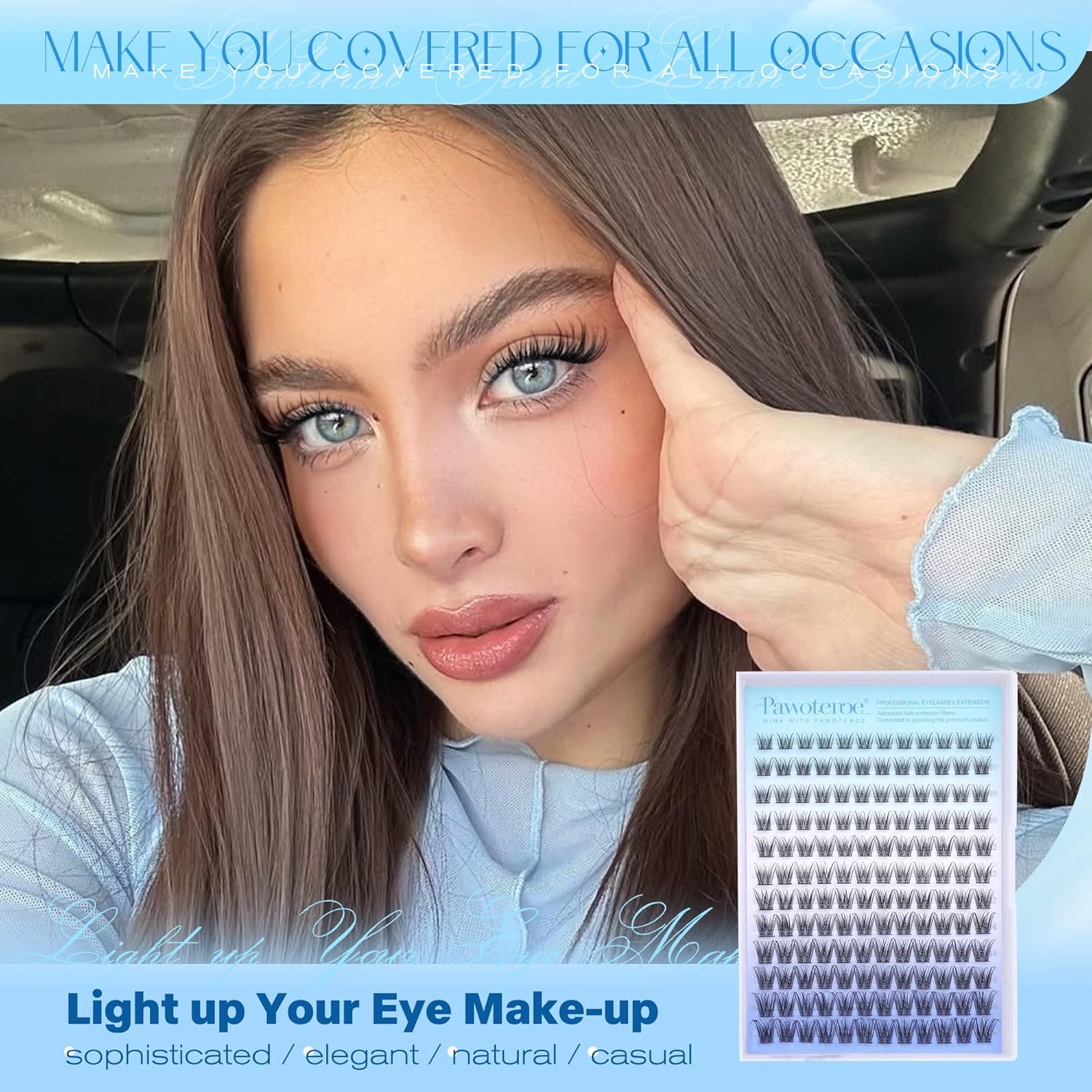 Pawotence Wispy Lash Clusters Natural Eyelash Clusters 8-16mm Cluster Eyelash Extensions 144pcs Fairy Individual Lashes Wispy Cluater Lashes Extension Natural Look