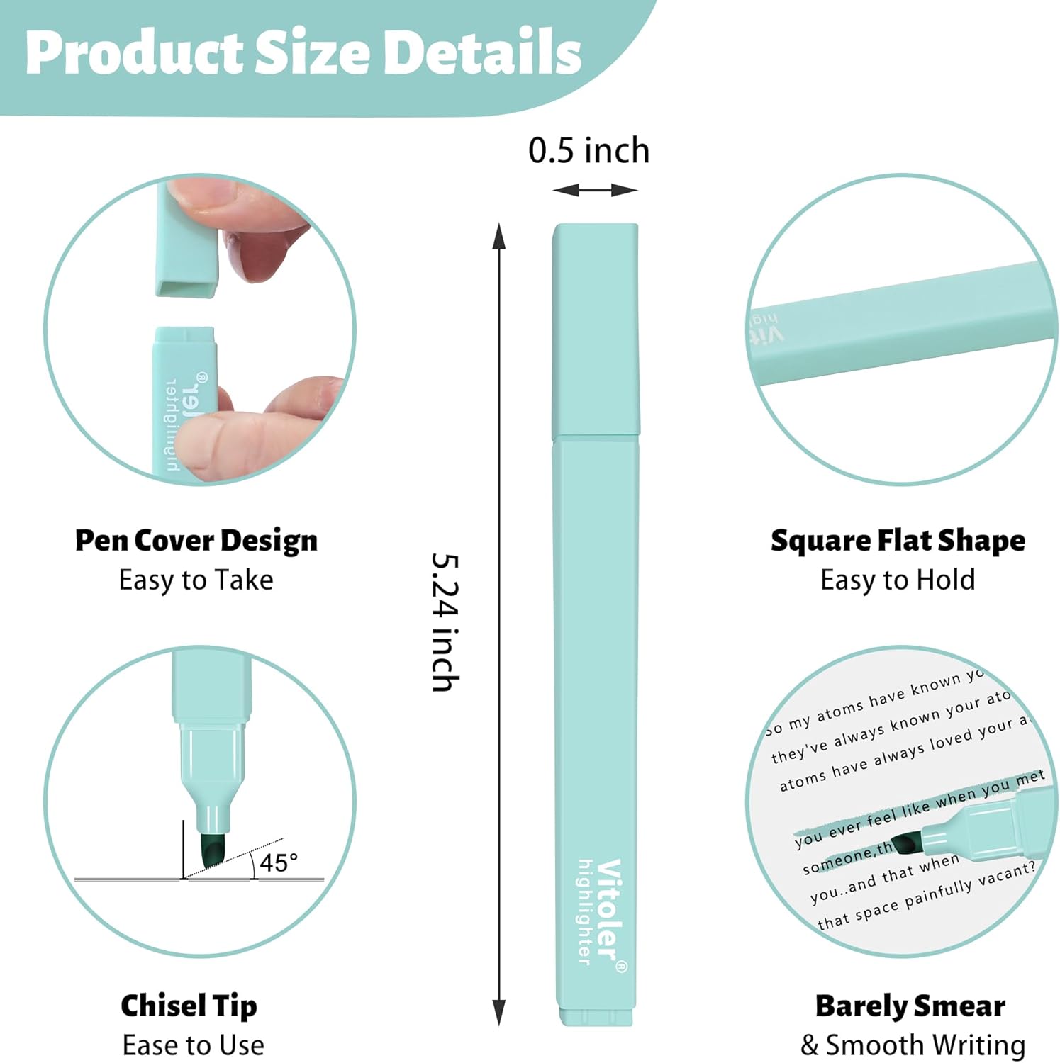 - Cute Pens Easy to Hold: The pastel highlighter is designed with square shape,itโs comfortable and easy to hold, without a sore hand and don't roll around while using.