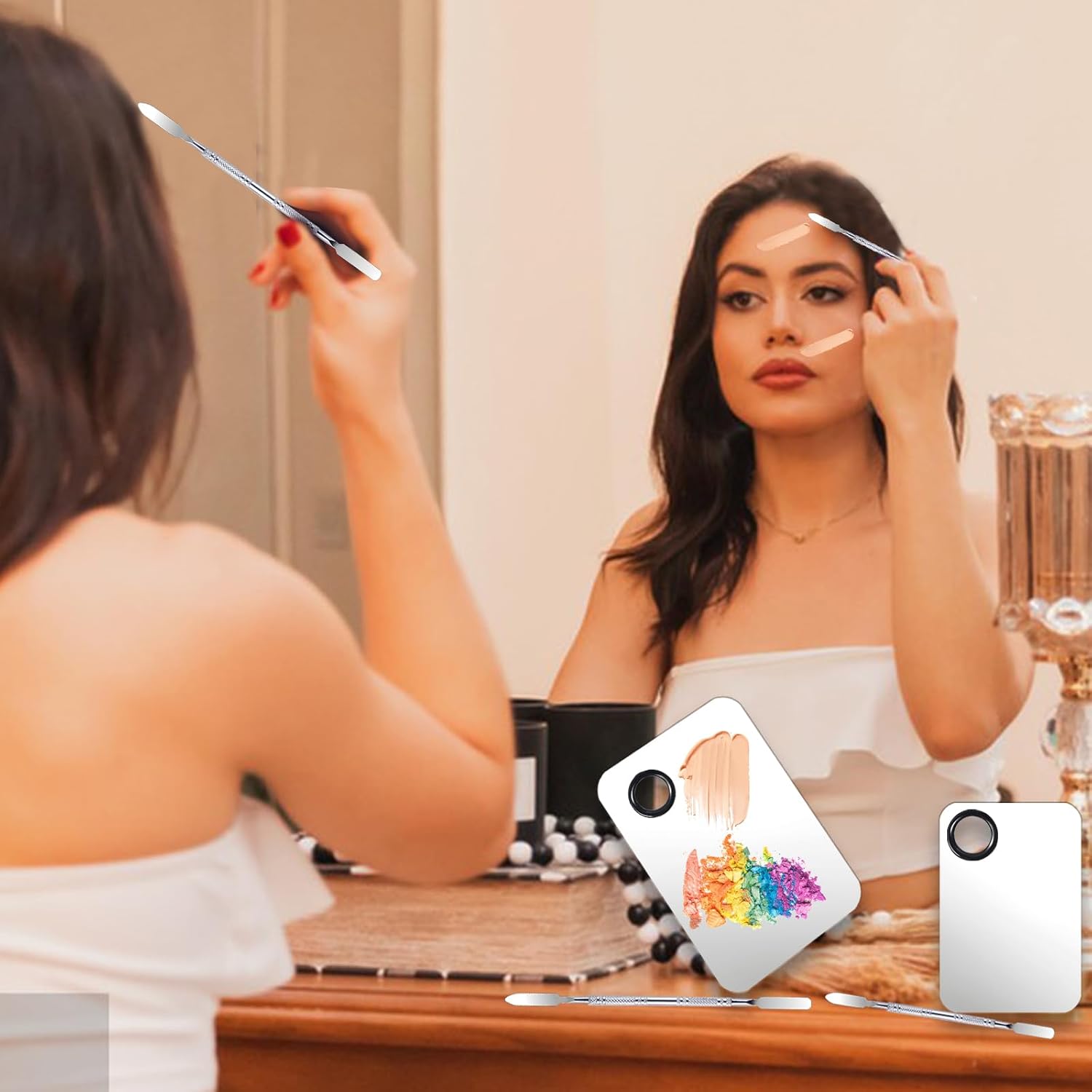 2 Set Makeup Mixing Palette,Stainless Steel Makeup Palette with Spatula Professional Make up Artist Must haves,Suitable for Mixing Foundation Make up Eye Shadow and Nail