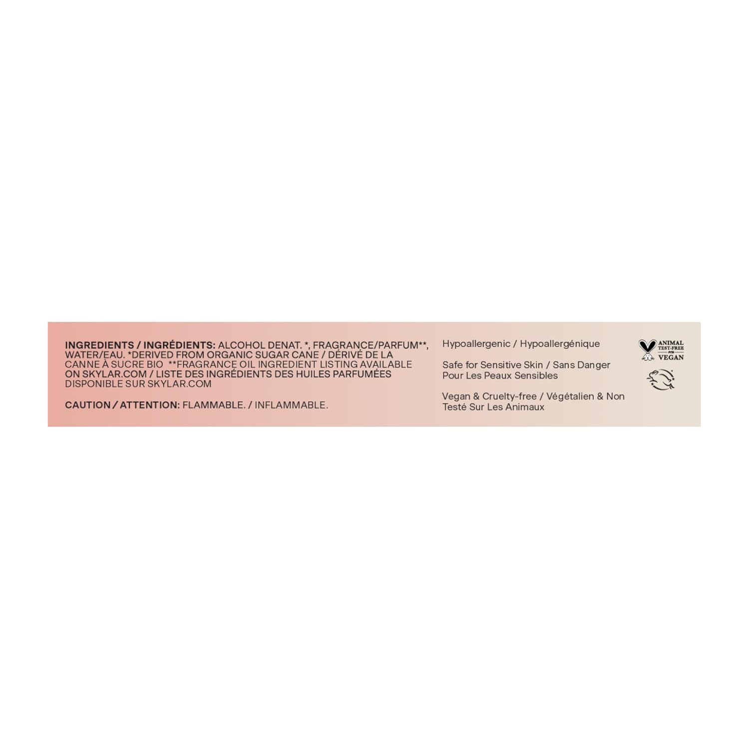 - Clean Fragrance for Women: Skylar's clean beauty perfumes for women are hypoallergenic, vegan, and cruelty-free, ensuring they are safe for sensitive skin. These fragrances are formulated without parabens, phthalates, sulfates, synthetic dyes, or any harmful chemicals, reflecting a commitment to purity and safety.