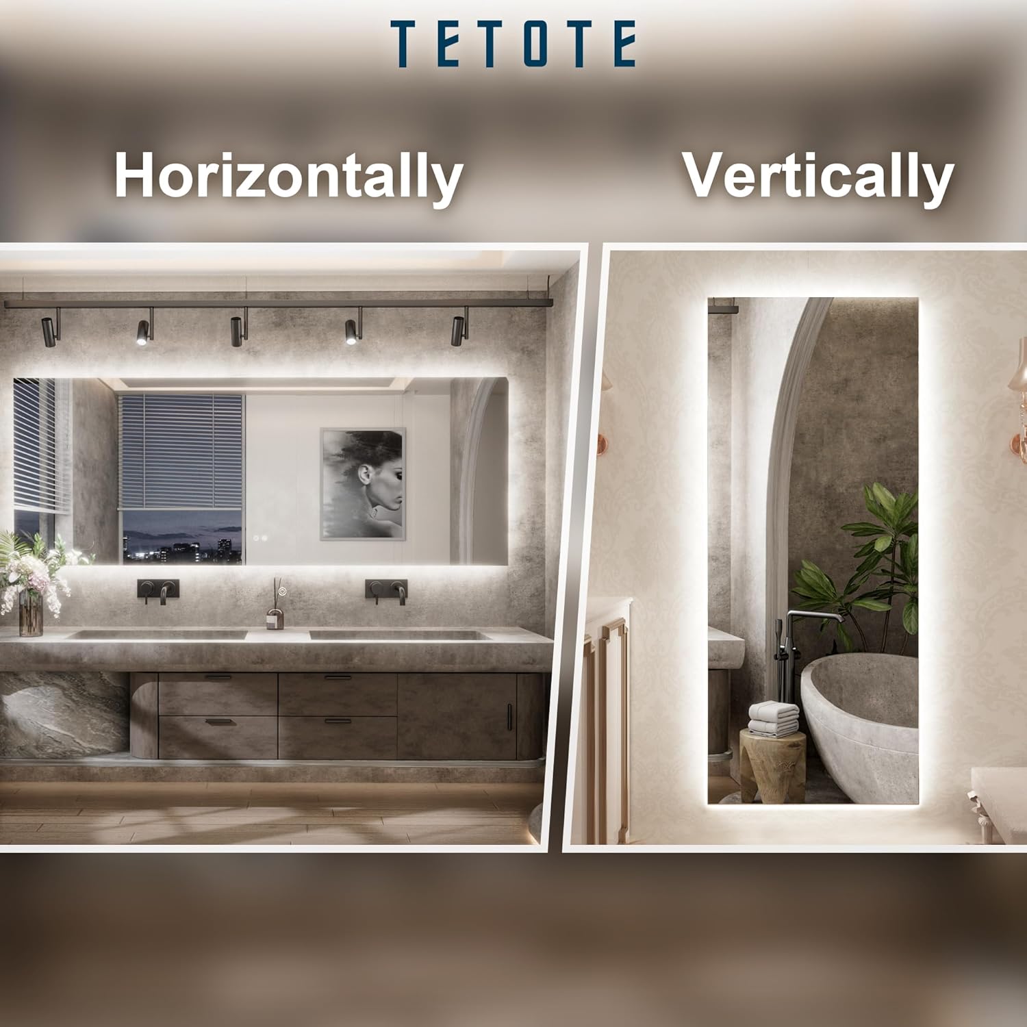 - ✨【Reliable packing & Easy installation】-TETOTE mirror is secured by reinforce foam box with extra protection.Plug and screws included.Installed with plug or hardwired,horizontal or vertical all by your choice.