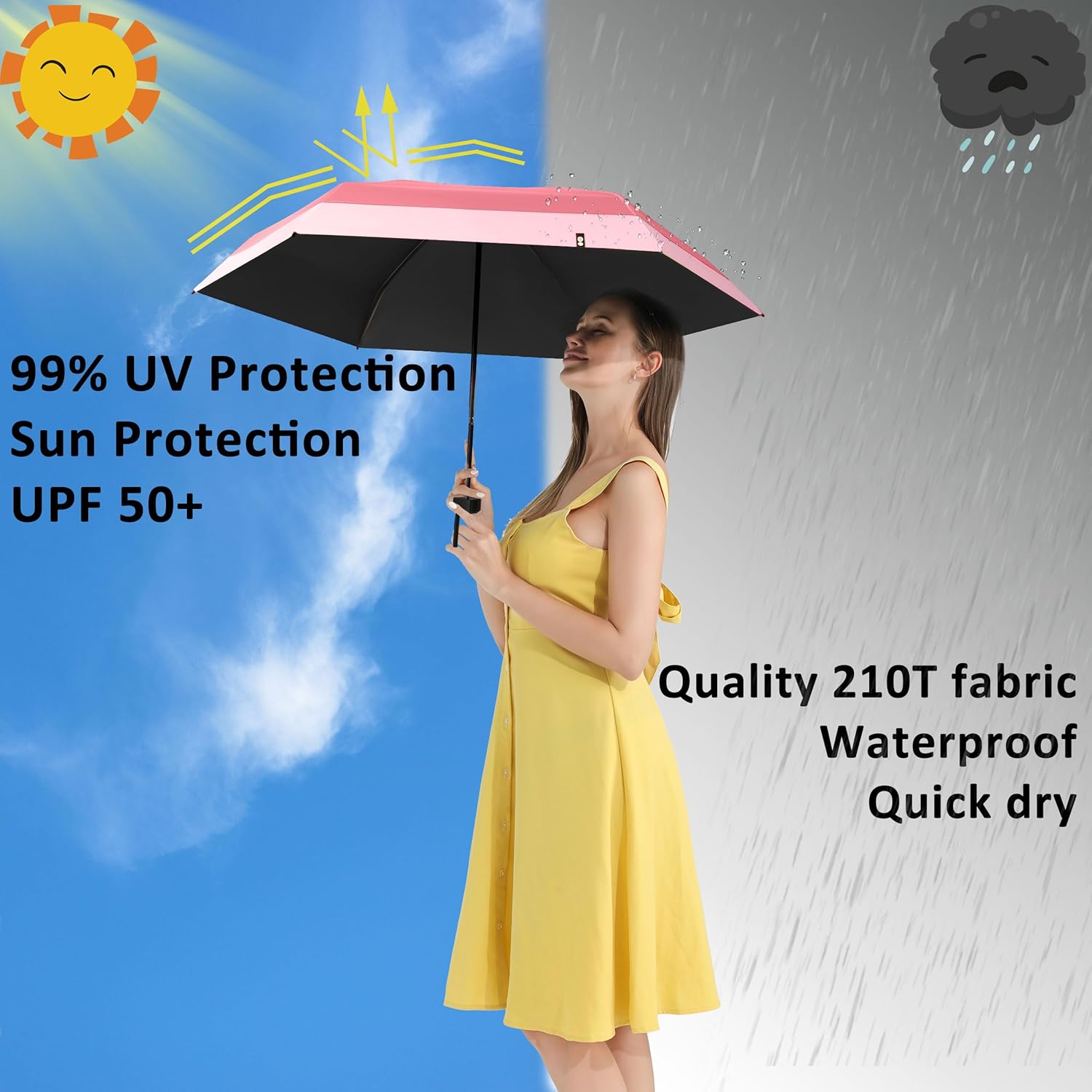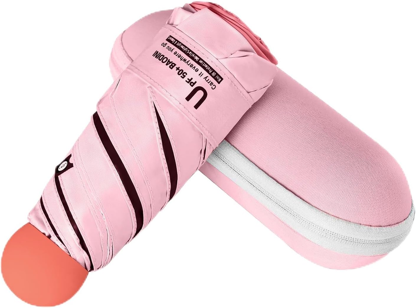 BAODINI Travel Mini Umbrella for Purse With Case Small Compact UV Sun Protection Sun Lightweight Tiny Pocket Umbrella for Women Kids and Men