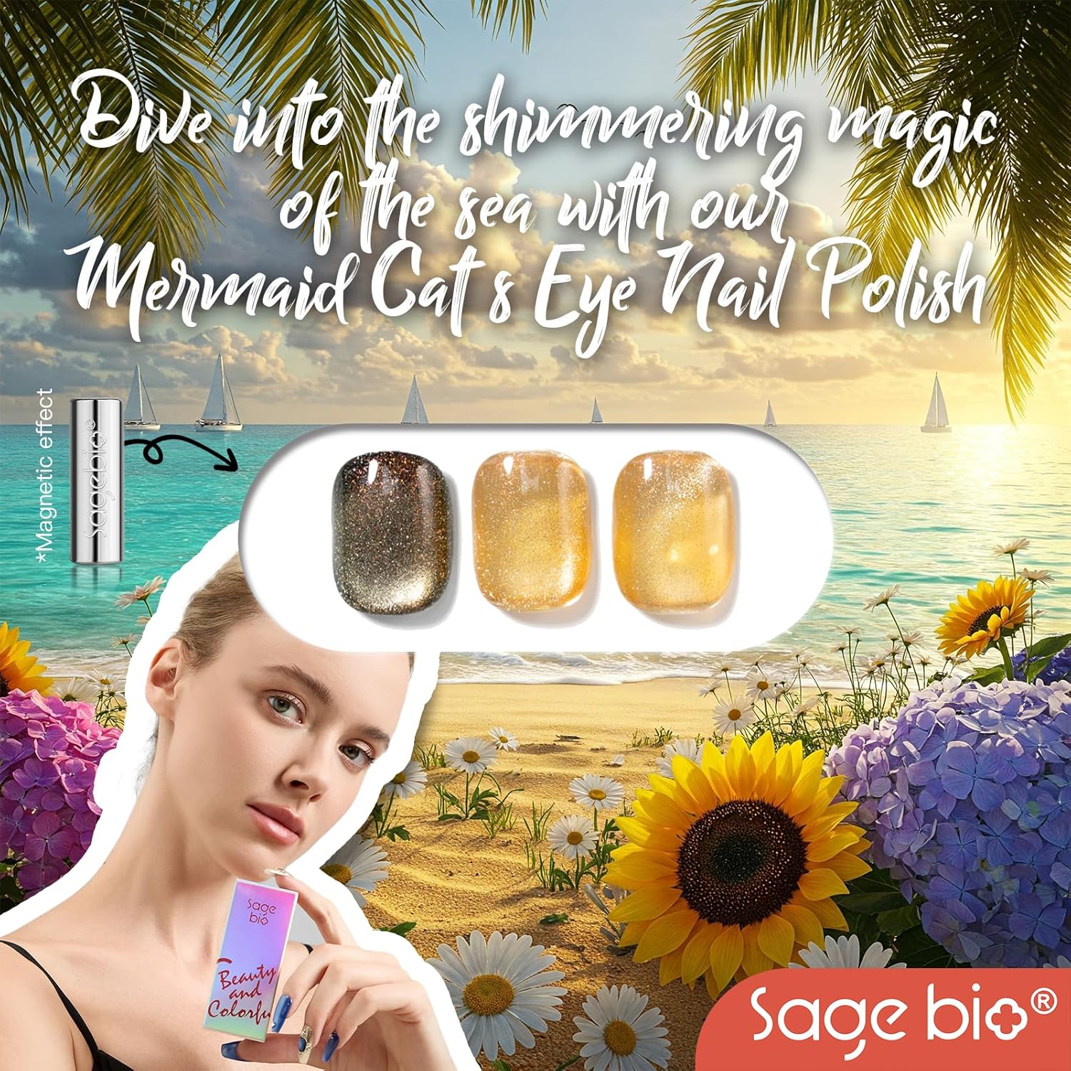 - Captivating 3D Cat Eye Effect: Create mesmerizing, multi-dimensional designs with SAGEBIO's cat eye gel polish. The included magnet stick helps you achieve a dazzling 3D magnetic effect that shifts beautifully with light.