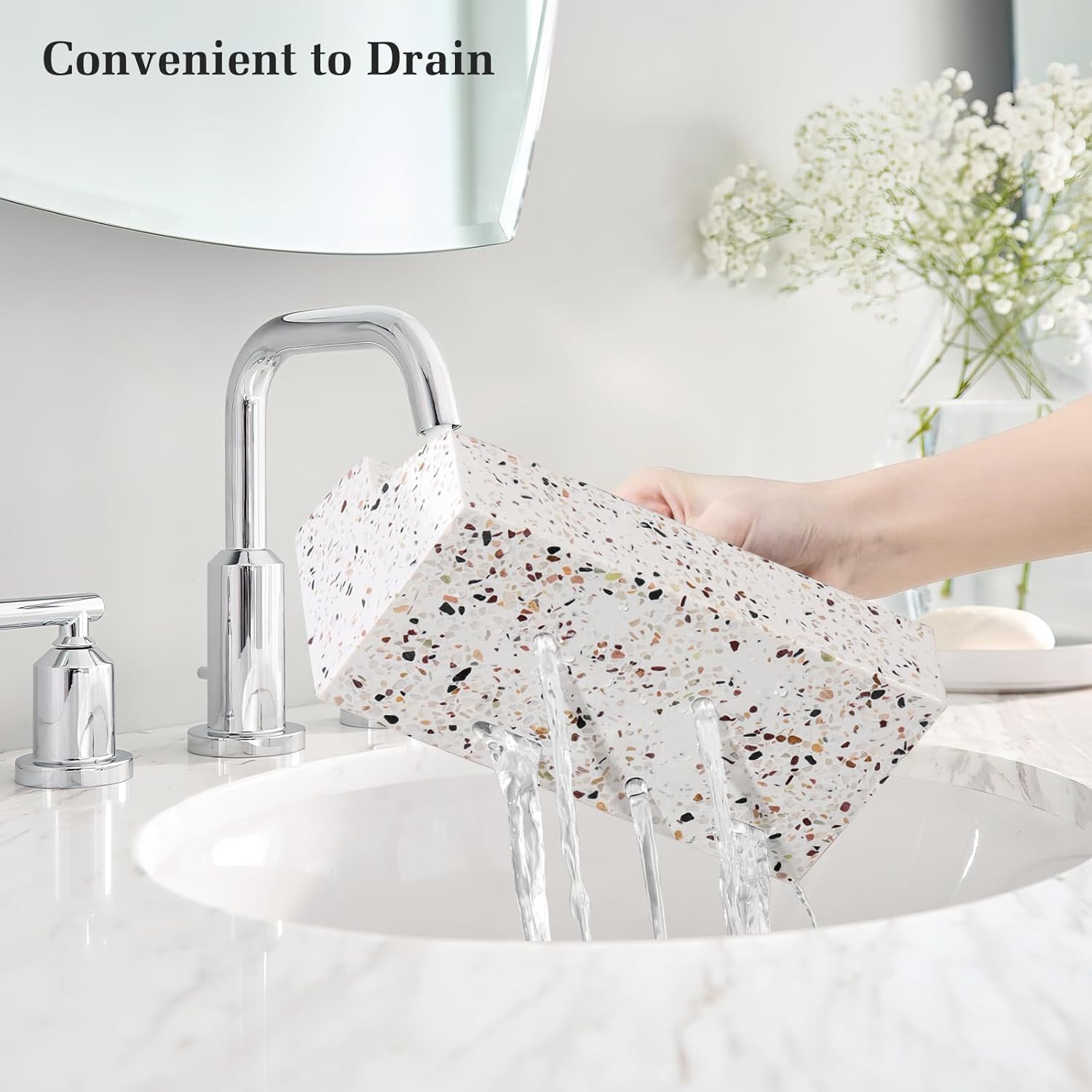 - Look Design: This bathroom organizer countertop features a simple and design-forward look. Each bathroom organizer countertop has a unique pattern. NOTE: Put the toothbrush holder in a ventilated place for 2-3 days to disperse the smell.