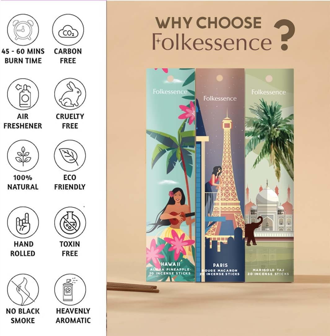 - VALUE PACK WITH 6 PACKS & HOLDER β Each box contains 6 premium packs of natural incense sticks or insents with an incense holder. With a burn time of approximately 45 minutes per stick, they offer a clean, long-lasting aroma and minimal smoke.