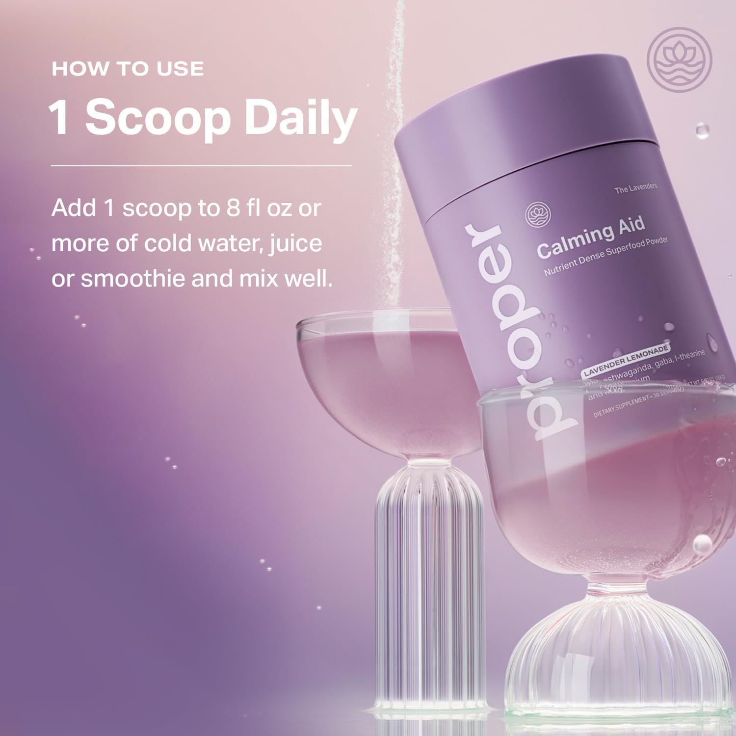 Proper, The Lavenders Calming Aid. Magnesium Supplement Relaxation Drink Mix with GABA, L-Theanine, Lavender, Lemon Balm, and Ashwagandha. Natural Calm Stress Support Supplements