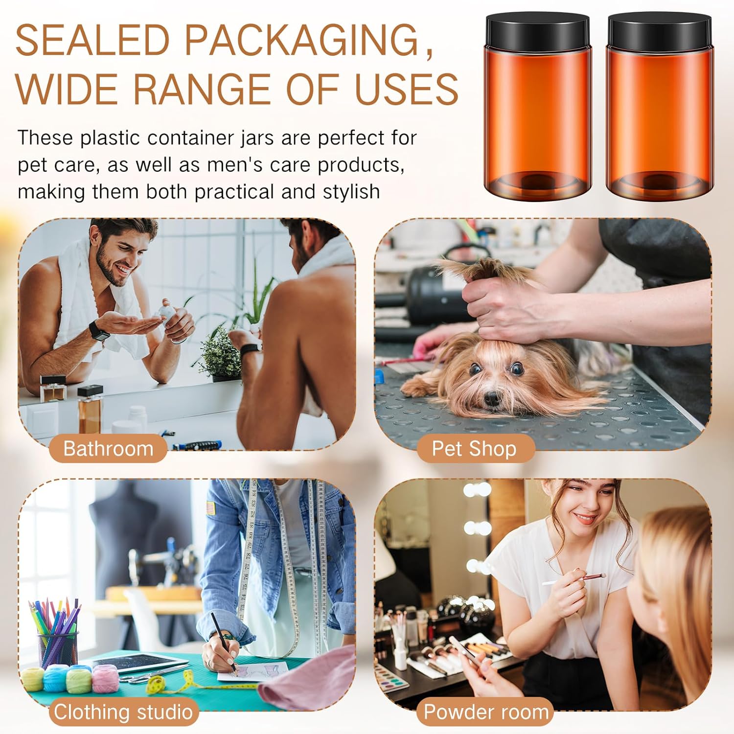 Patelai 4 Pieces Round Wide-mouth Leak Proof Plastic Container Jars with Lids for Travel Storage Makeup Beauty Products Face Creams Oils Salves Ointments DIY Making(12 Ounce,Amber)