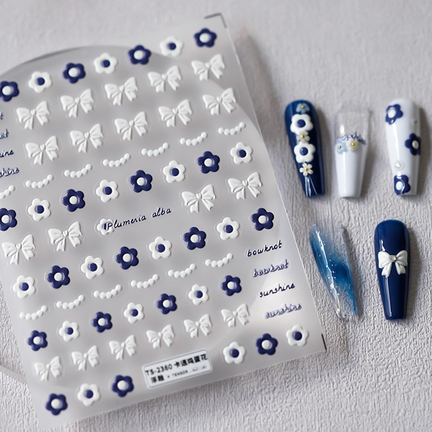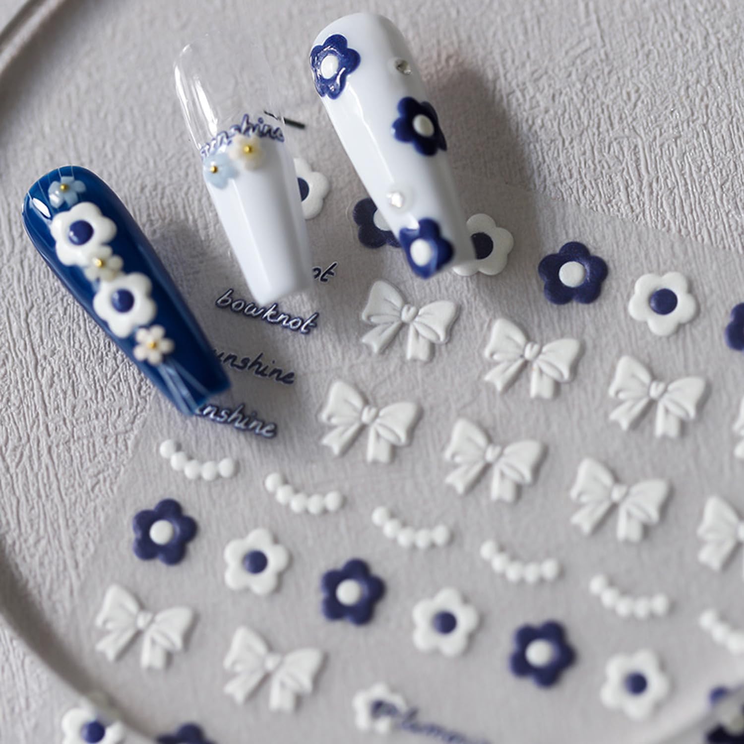 - spring summer nail stickers for nail art for women kids girls holiday cute flower nail art stickers 5D embossed nail decals design blue floral fingernail stickers calcomanías para uñas sticker para uñas