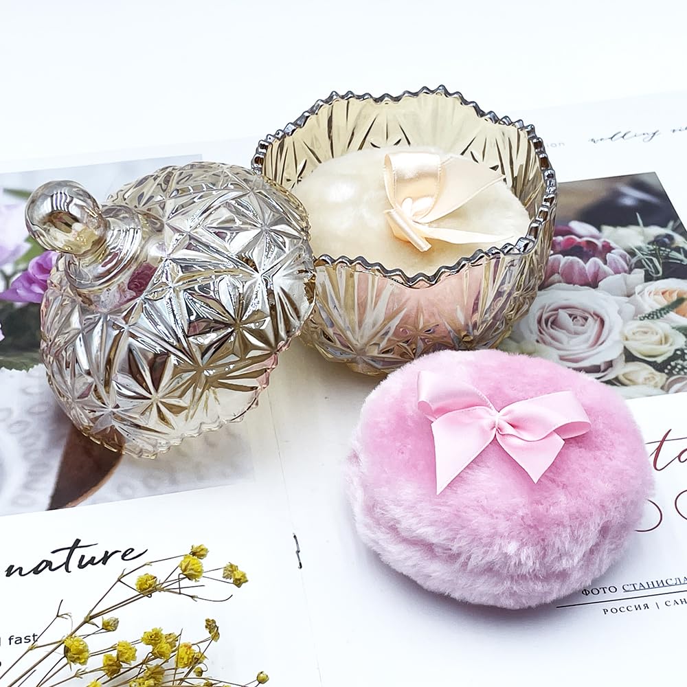 - Premium 2 Powder Puffs & 1 Stylish Jar Combo: Includes 2 ultra-soft 3.5" long-fluff powder puffs (ideal for body powder or makeup setting) and a chic 4" glass powder jar with vavious color options.