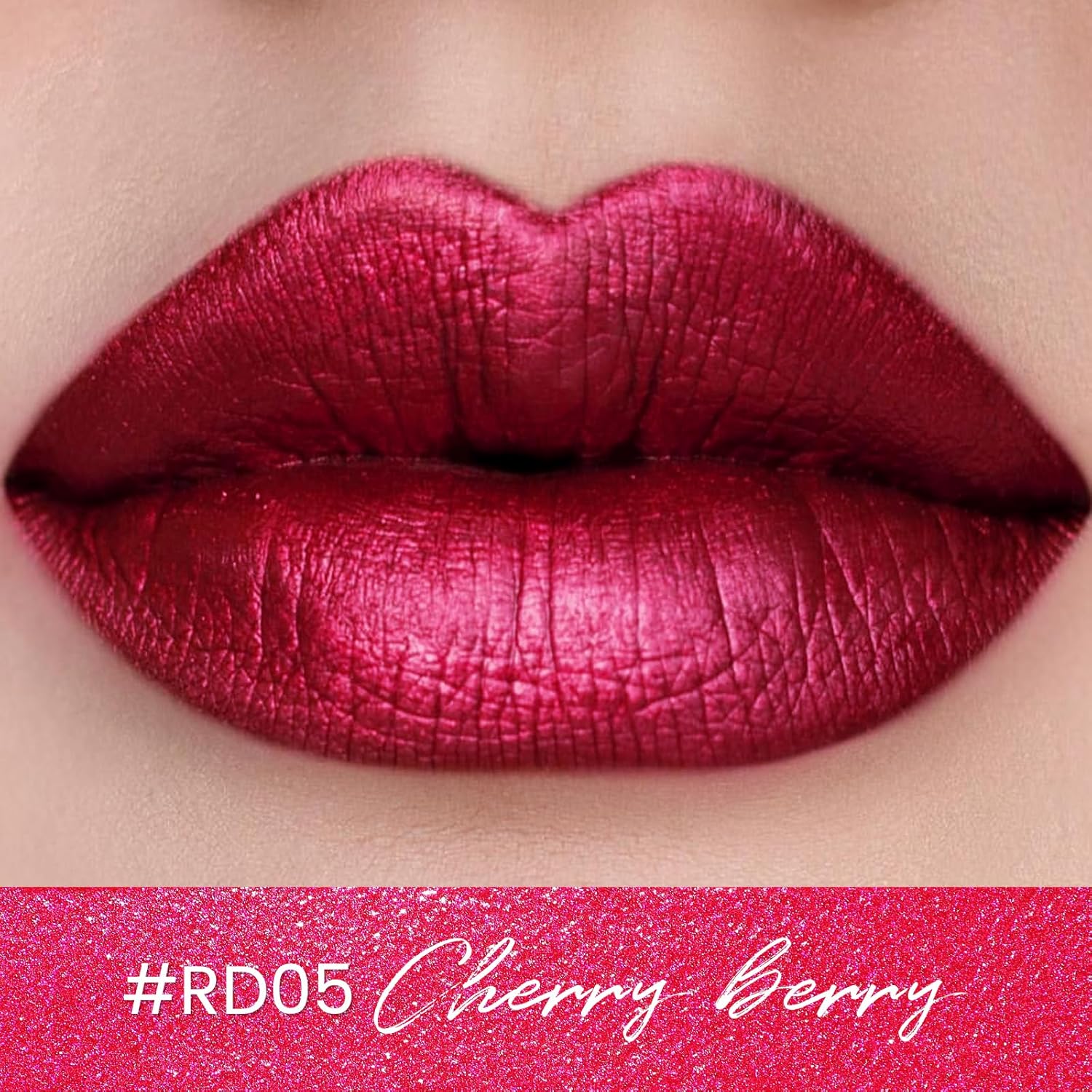 FOCALLURE Metallic Liquid Lipstick,Non Stick Cup Lip Gloss,High Impact Lip Color with Transfer-proof Wear,Long Lasting & Waterproof Lipstick Makeup for Women,RD05 CHERRY BERRY