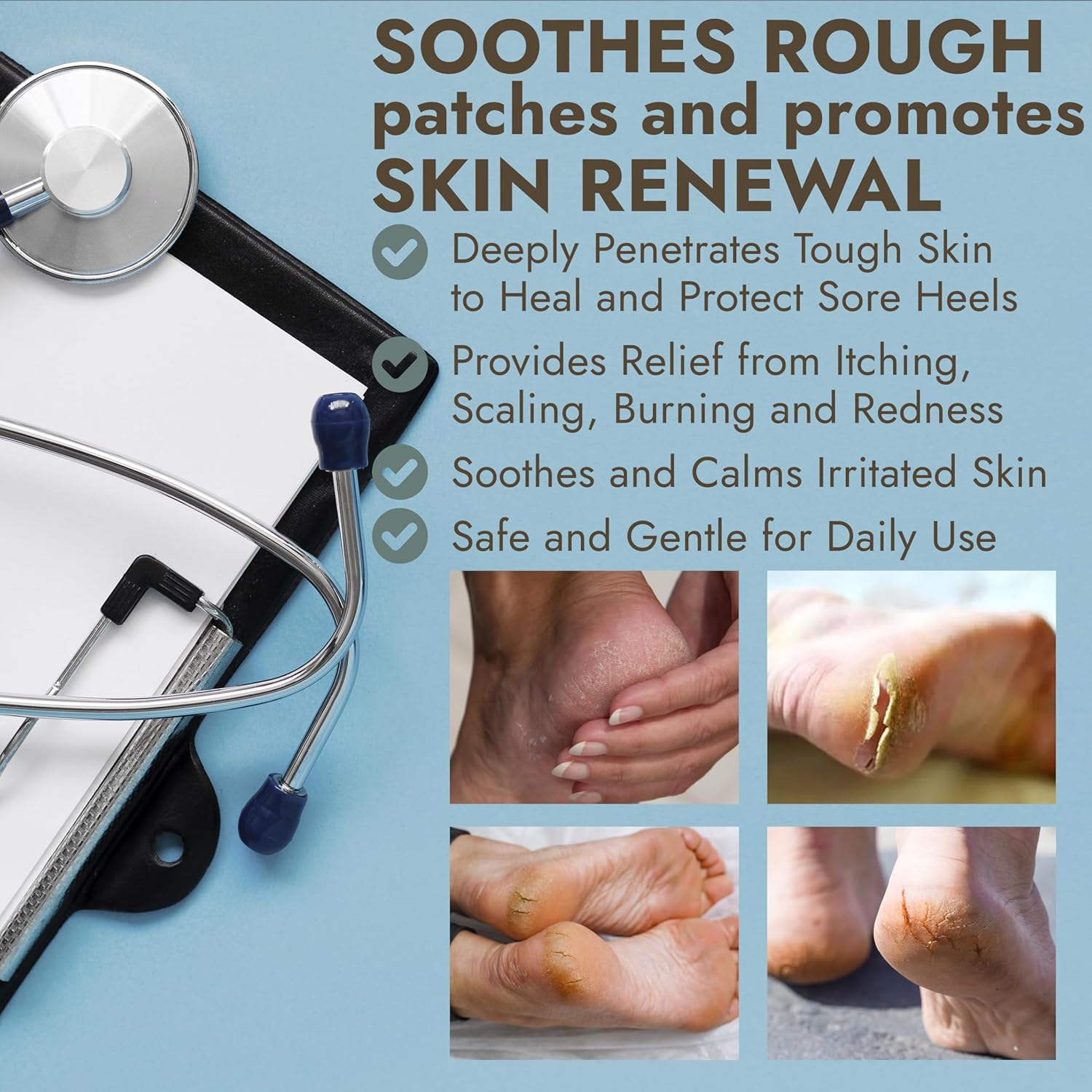 - Cracked Heel Repair: Heal cracked heels and thick, dry skin with our intensely moisturizing formula. Designed to target stubborn areas, this balm smooths, softens, and rejuvenates rough feet for fast, visible results you can feel and see.