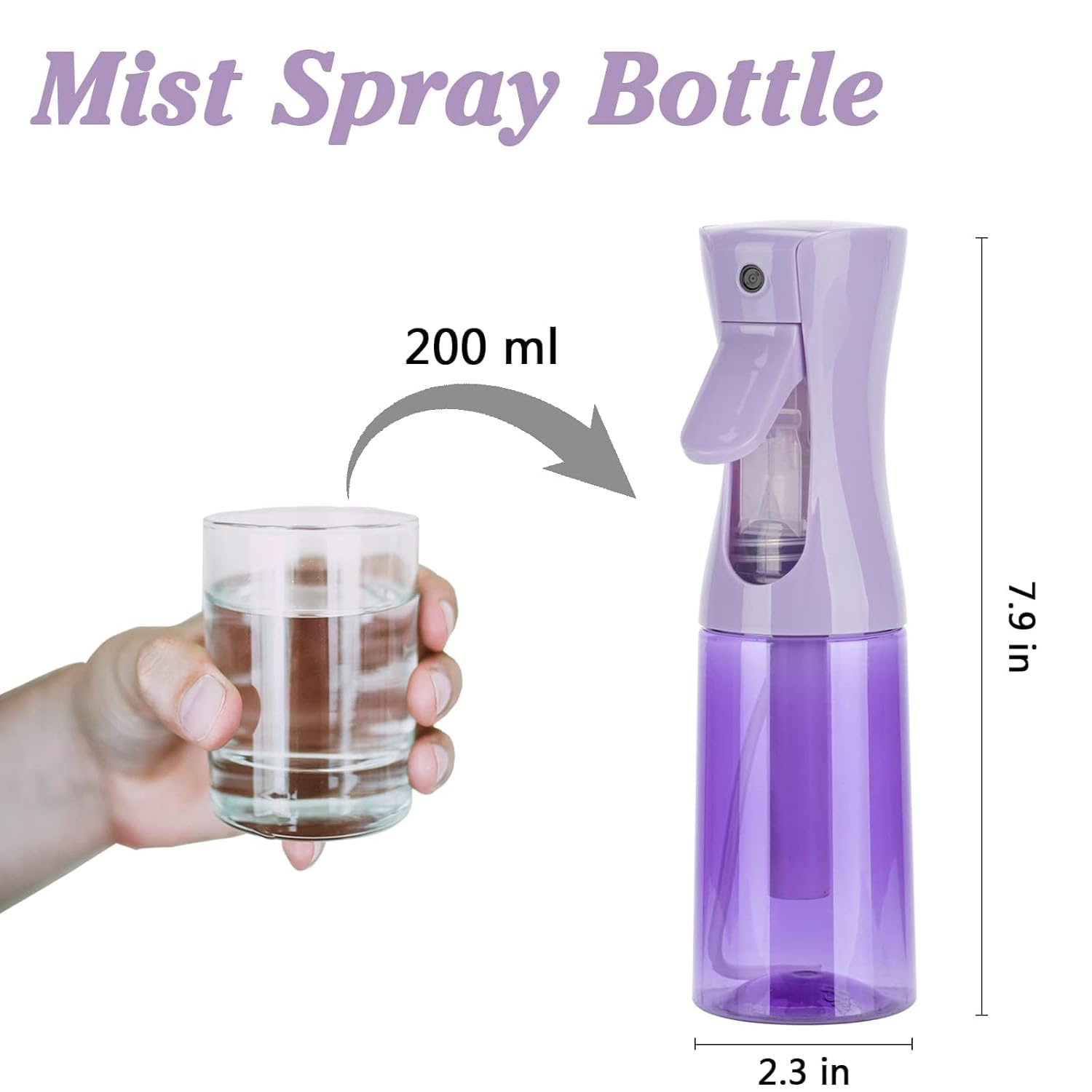 Spray Bottle for Hair (6.8OZ /200ML) Continuous Ultra Fine Mist Sprayer for Hair, Salons, Barber, Plants, Skin Care, Cleaning 2 Pack Purple