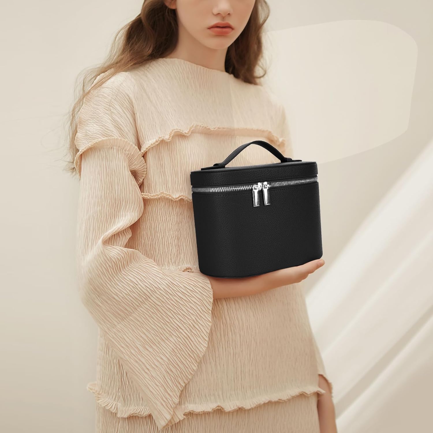 - Size and Capacity: Size: 7.87x5.91x5.51inch. This coametic bag can easily holds travel-size toiletries, skin-care products or other makeup items.