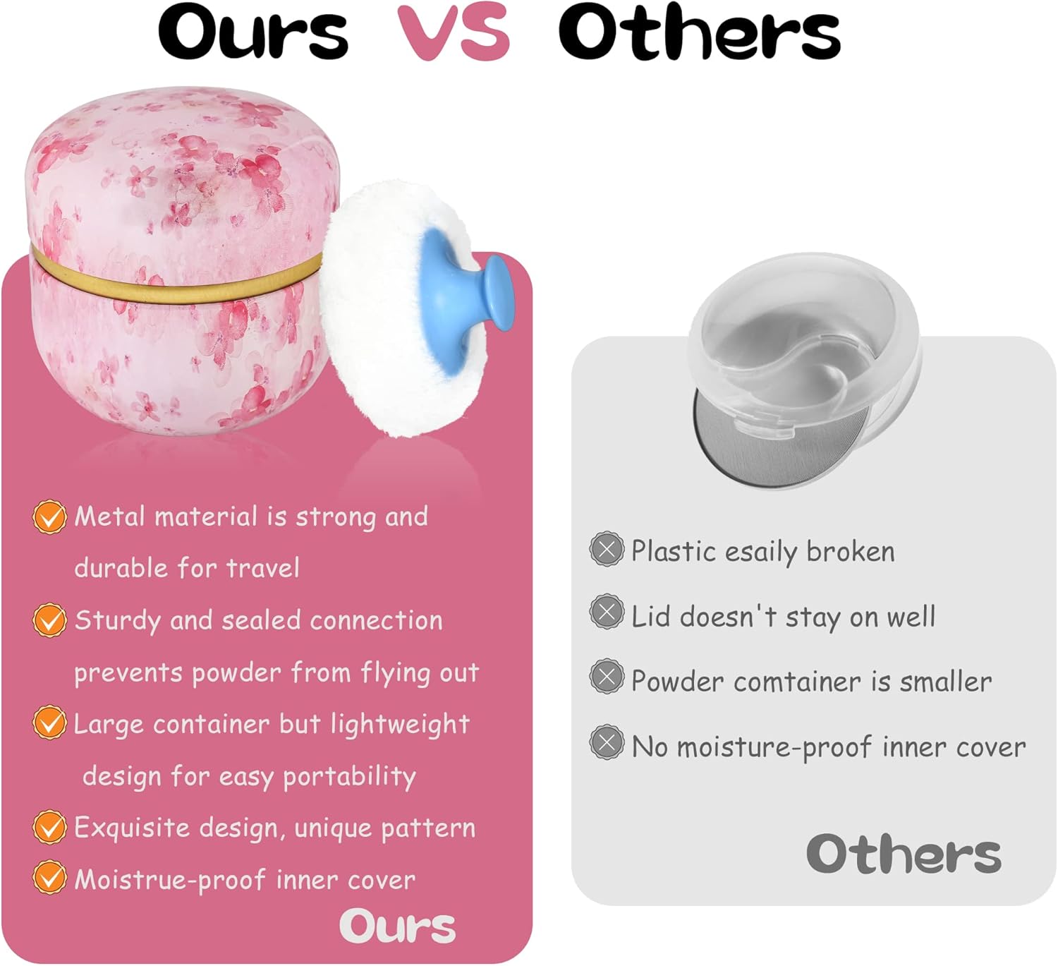 WEMEGA Body Powder Case with Powder Puff Powder Container Tea Box for Baby and Women Powder Puff and Powder Case for Travel (Pink Flower1)