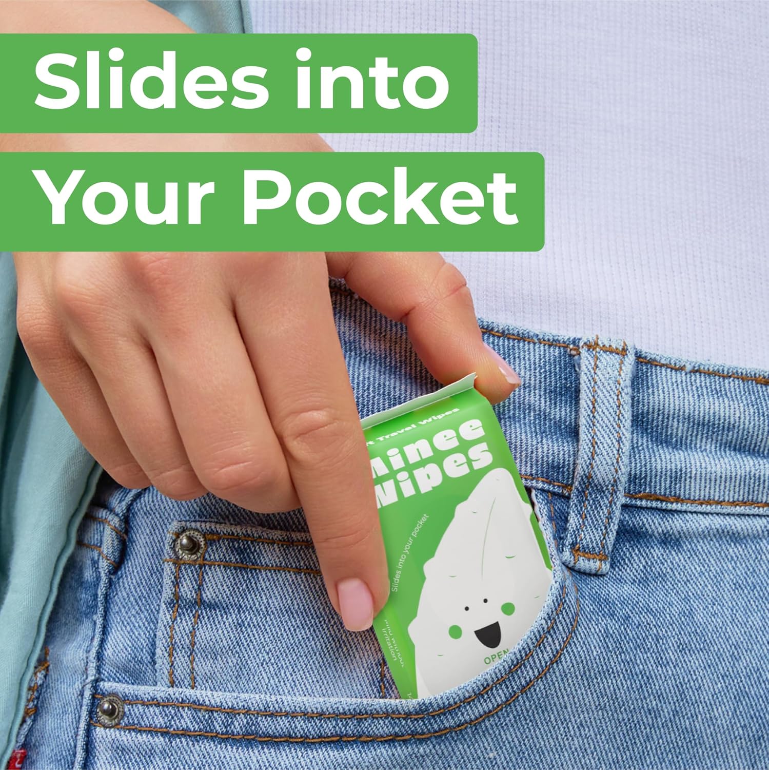 - 💚SLIDES INTO YOUR POCKET: Our mini aloe wipes offer the ultimate in portability with their compact design. These refreshing scented wipes fit effortlessly into your pocket, making them the ideal choice for those seeking convenient, on-the-go hygiene solutions. Perfect aloe hand wipes for any occasion. More convenient to use than individual wipes and hand wipes individually wrapped.