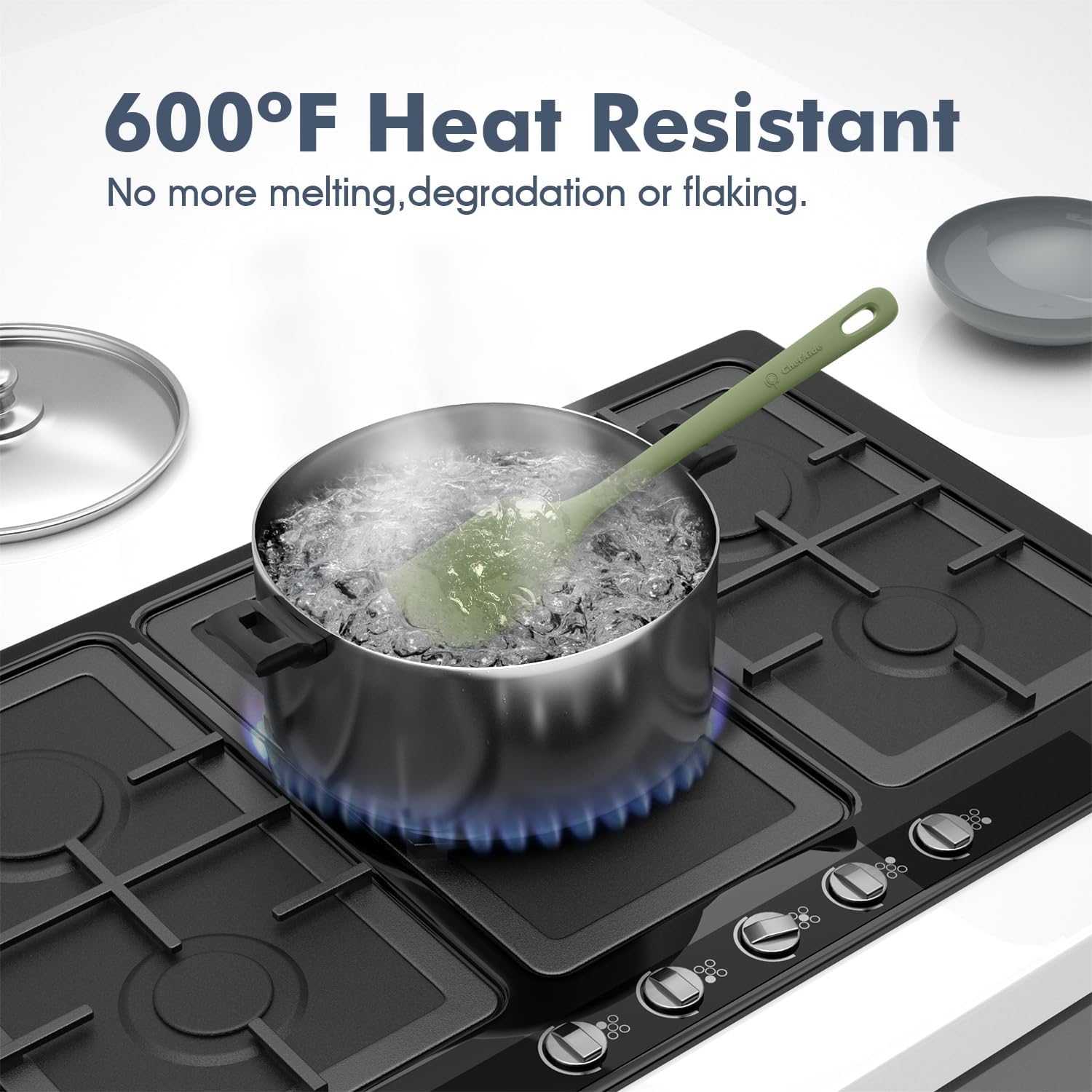 - Premium 100% Food Grade Silicone: The silicone spatula set is made of healthy and friendly material, resistant to high temperatures up to 600 °F. No more melting, cracking and worrying