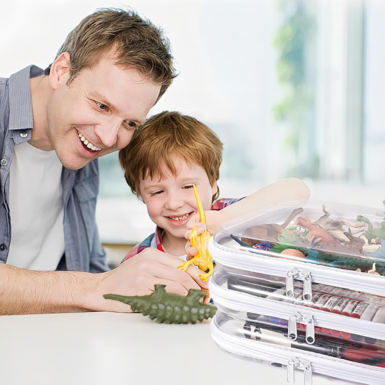 Clear Hard Plastic Zipper Case,Transparent Double Zippers Hard Pouch with 6pcs,Portable Travel Organizer Bin for Toy Storage