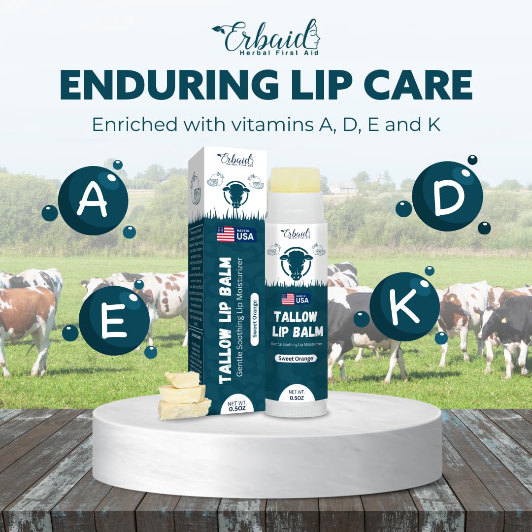 • INTENSELY HYDRATING FORMULA: Immerse your lips in moisture with our grass-fed organic beef tallow lip balm with orange flavor. Crafted with natural fats, akin to those in human skin, it maintains your lips' moisture barrier for enduring hydration and velvety softness.