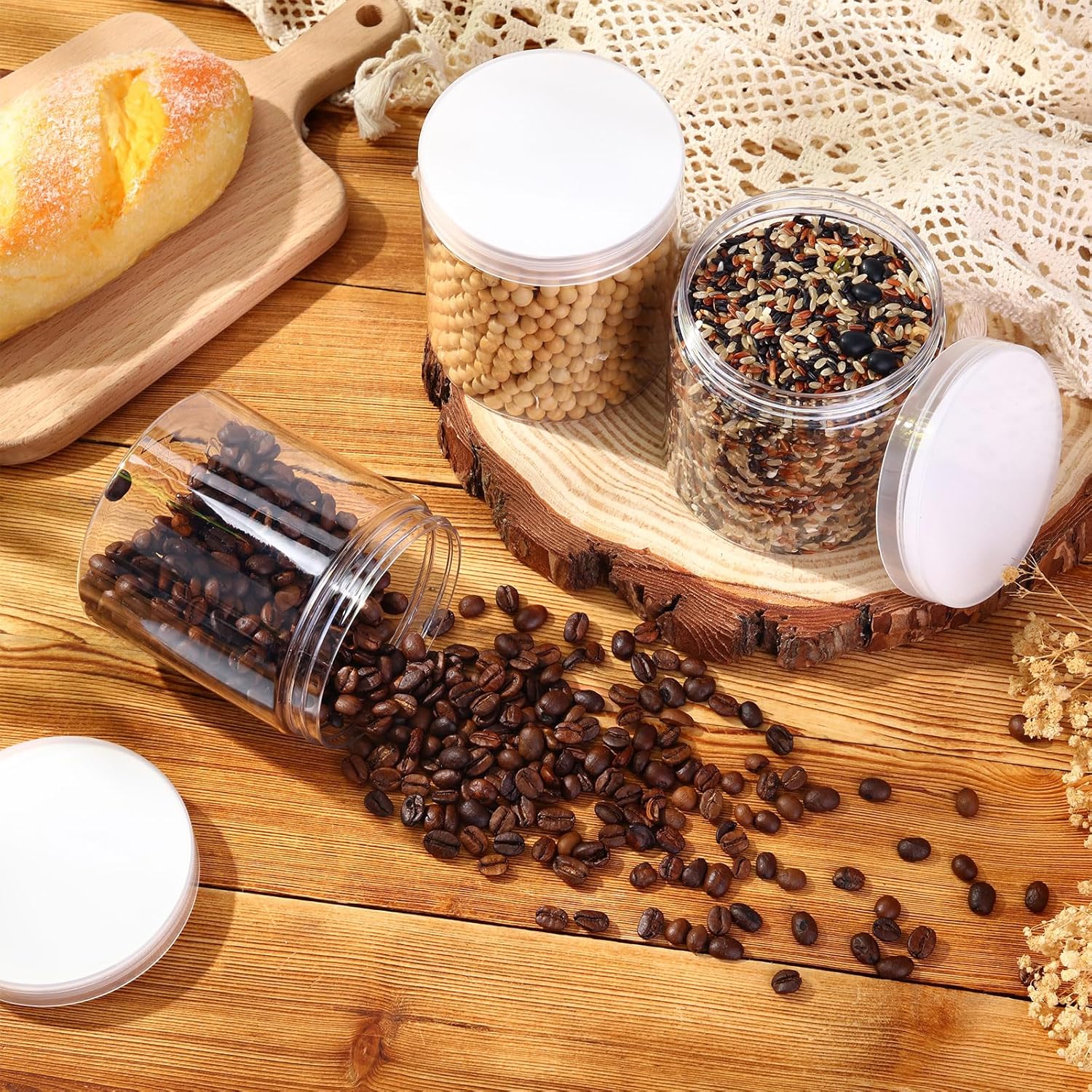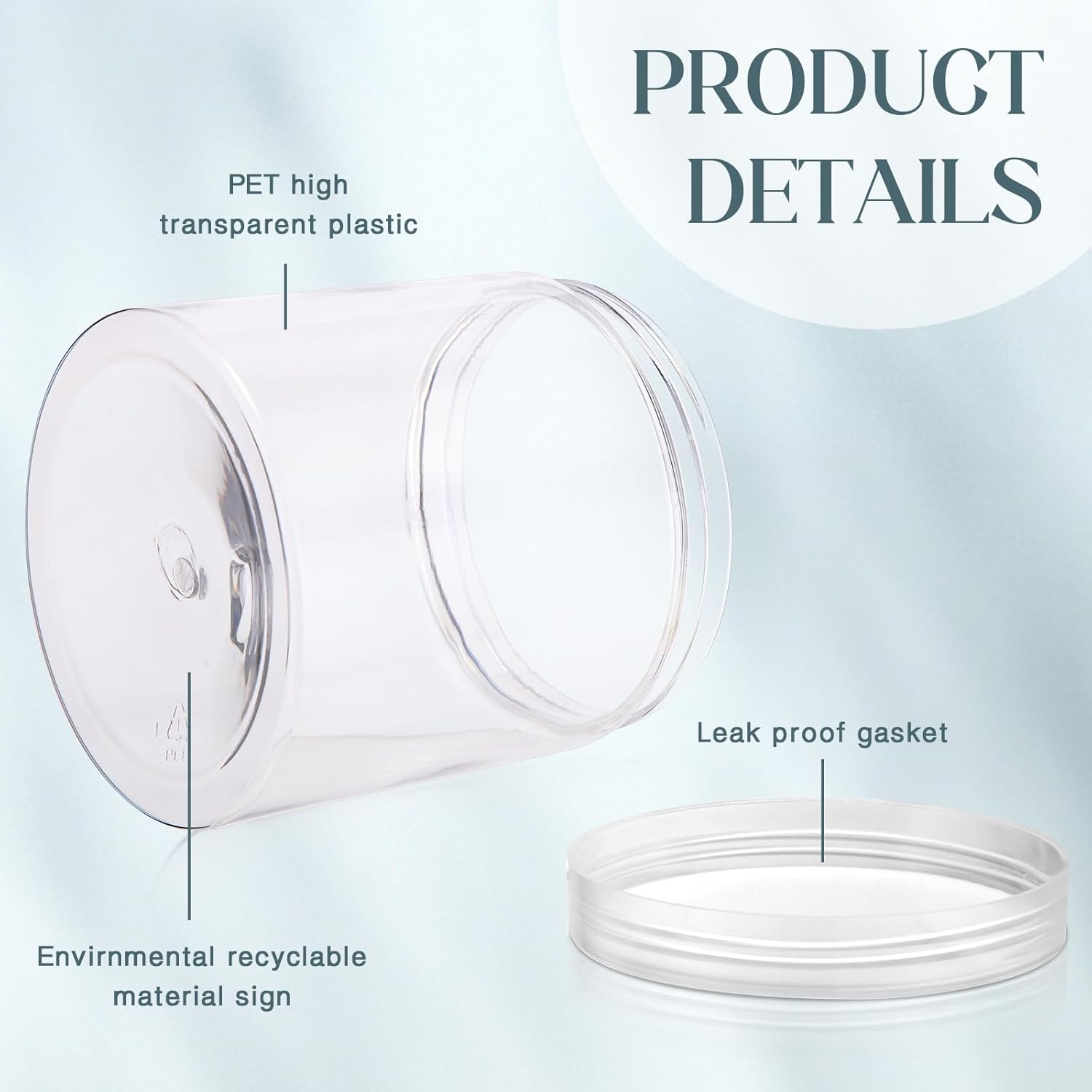 - Quality Material: these transparent containers jars are made of quality PET plastic with cylindrical design, thick and wear-resistant, ideal for long-time use