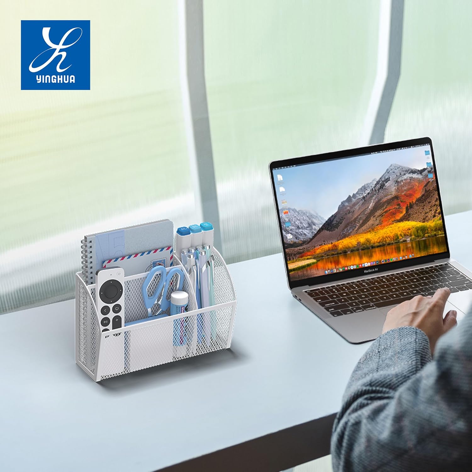 - Strong Magnetic Grip for Multi-Surface Use โ This White 3-compartment metal mesh desk organizer securely attaches to whiteboards, refrigerators, lockers, and other magnetic surfaces with its powerful built-in magnets. The sturdy hold keeps your pens, pencils, and small essentials in place while freeing up desk space. Perfect as a pen holder for desk, office organizer, or classroom pencil holder