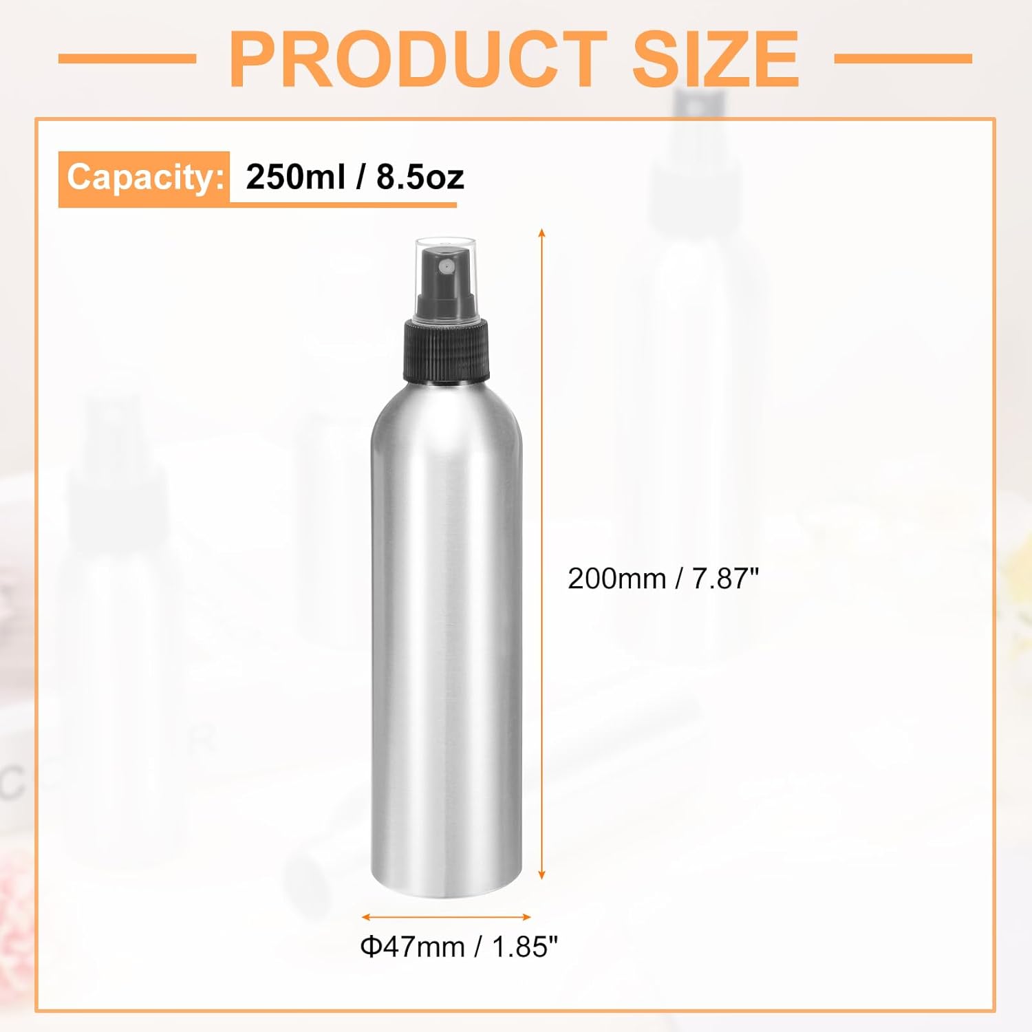 HARFINGTON 5pcs Aluminum Fine Mist Spray Bottles 250ml/8.5oz Metal Small Liquid Alcohol Refillable Travel Container with Black Plastic Nozzle Cap for Perfume Skincare Cosmetic Storage Bottle