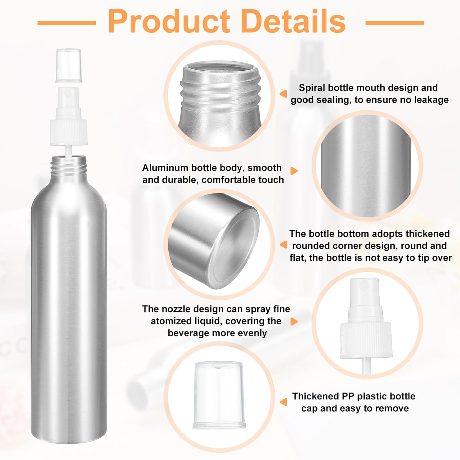 HARFINGTON Aluminum Fine Mist Spray Bottles 250ml/8.5oz Metal Small Liquid Alcohol Refillable Travel Container with White Plastic Nozzle Cap for Perfume Skincare Cosmetic Storage Bottle