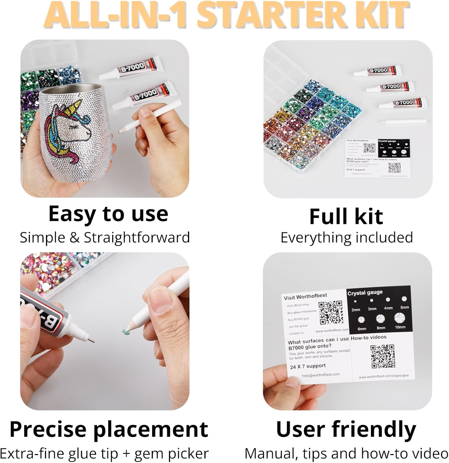 - Easy to Use -- This kit is designed to be straightforward, and versatile for various crafting projects. The manual is user-friendly and beneficial for both novice and experienced crafters. The complete and durable tools are suitable for precisely applying pearls to create intricate designs, with no additional tools required. Pearls are easy to apply and remove. The sturdy container with 24 grids keeps all pearls organized by size and color, making them easy to store and access