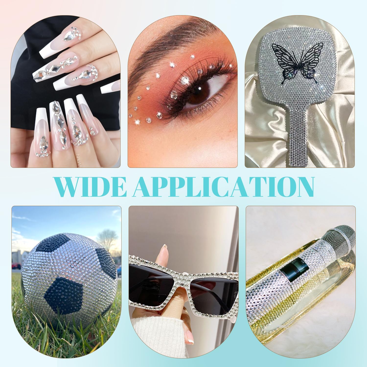 - WIDE APPLICATION -- These sparkling iridescent resin crystals are perfect for creating dazzling looks. Use them for bedazzling DIY crafts like shoes, tumblers, mugs, bottles, phone cases, popsockets, scrapbooks, photo frames, diamond paintings, greeting cards, bags, glasses, guitars, keychains, hats, masks, hair clips, bracelets, wristbands, clothing, wedding dresses, and more. Apply it to what you want to bling!