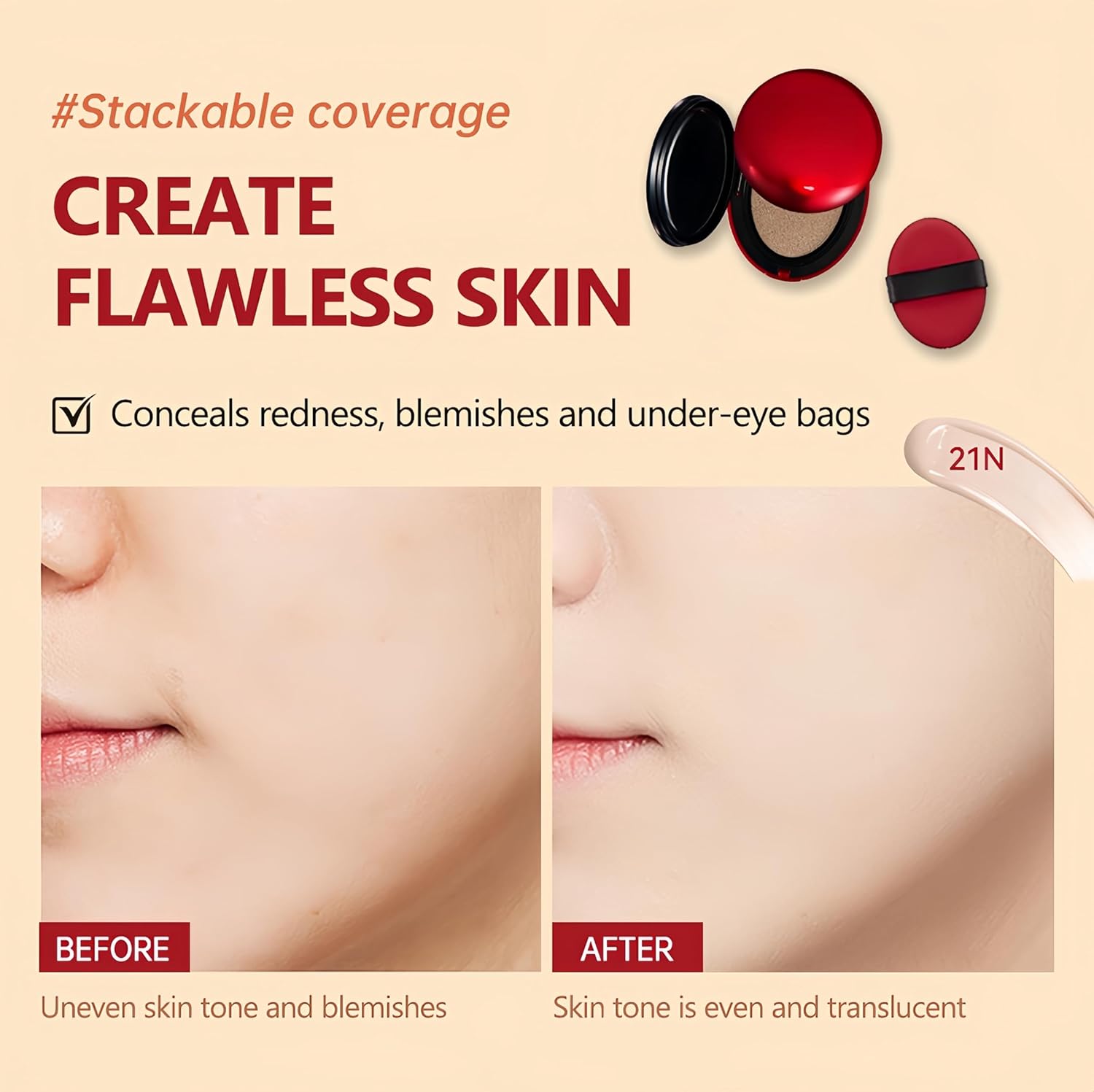 - 【Long-Lasting Hydration】Enriched with hydrating ingredients, this cushion foundation locks in moisture, keeping your skin soft and plump while resisting dryness, patchiness, and flakiness throughout the day.