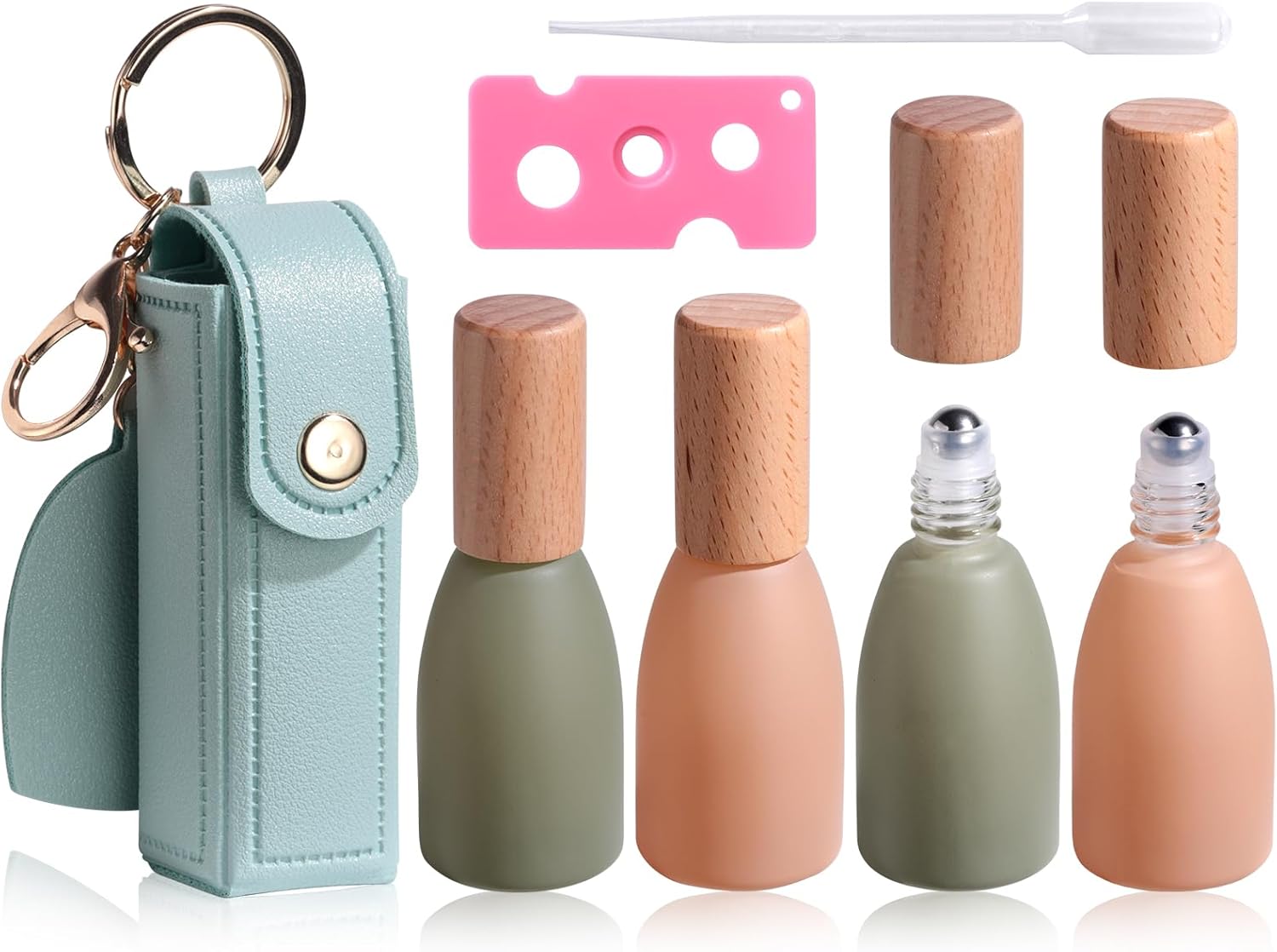 - Premium Materials: Colorful thick glass bottles body with stainless steel roller balls for essential oils, plastic cap and wooden cap