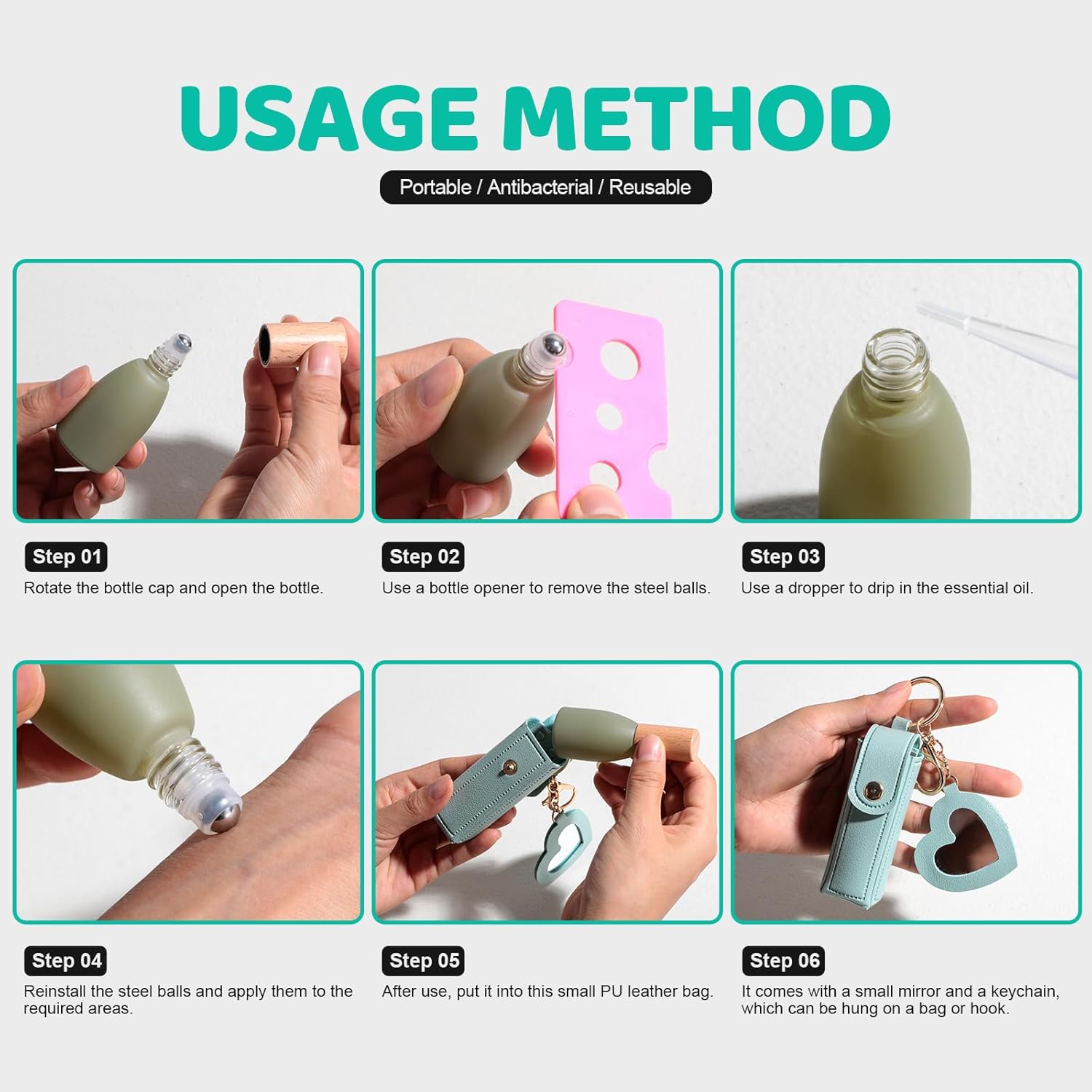 - Lovely Protable Bag: You can put the roller bottle in the small bag that convenient to carry in handbags, purses, pockets, bags