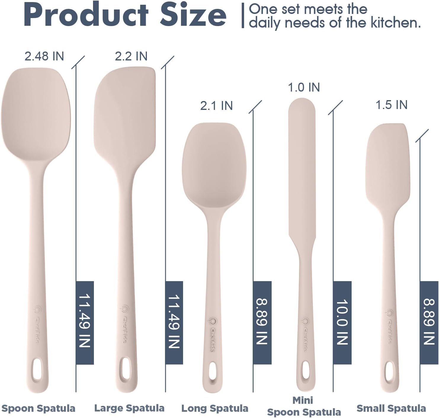 5 Pieces Silicone Spatula Set, Food Grade Rubber Spatula, Upgrade Strong Handle with Ergonomic Grip, Heat Resistant Up to 600°F for Nonstick Cookware, Cooking Creamy White