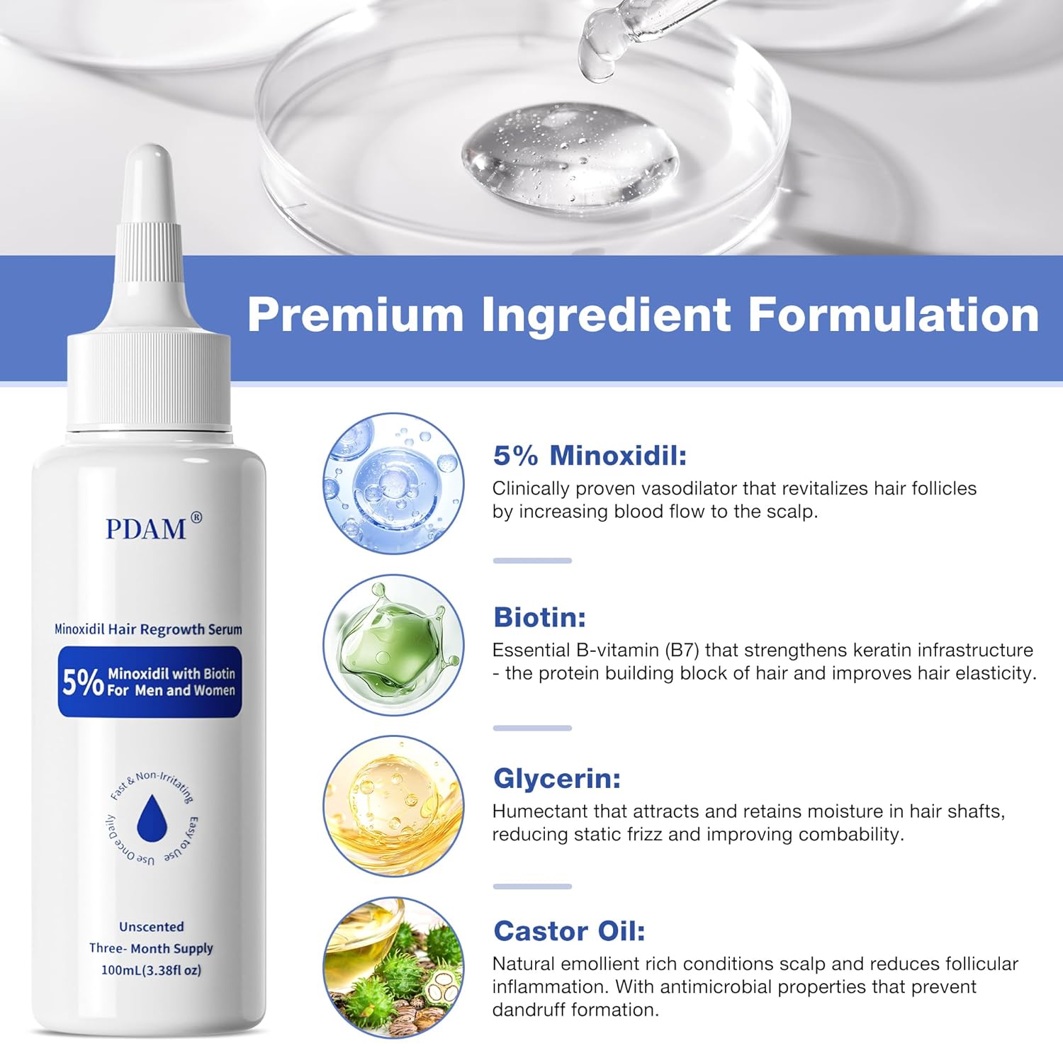 - Safe and Easy to Use for Both Men and Women: This minoxidil 5% serum is an easy-to-apply hair growth serum that works for both minoxidil for women hair growth and minoxidil for men hair. Use it directly on your scalp or beard for targeted, effective treatment. We recommend daily application for optimal results.