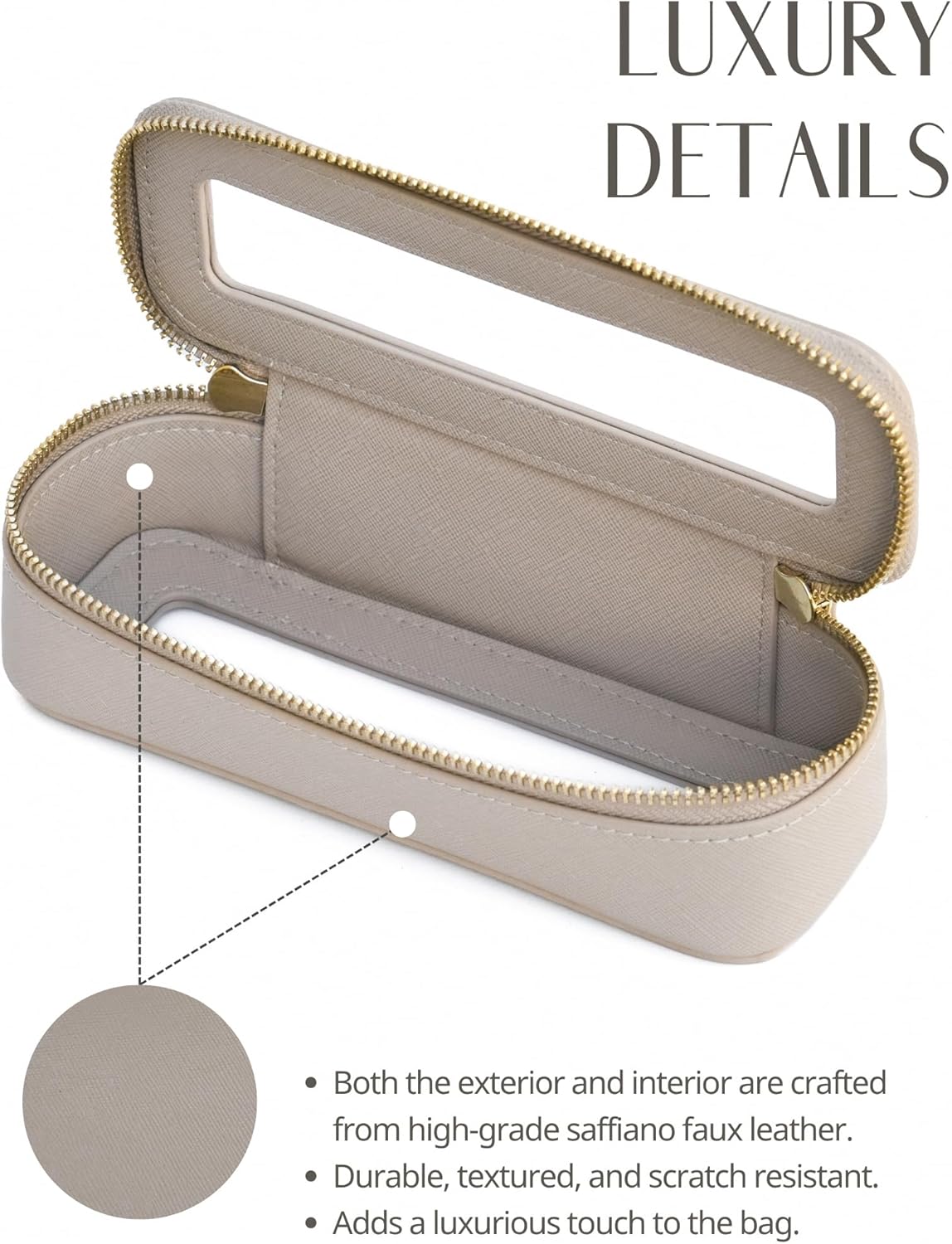 - [Slim Brush Makeup Bag] - This slim makeup bag is 7.5'' x 2.5'' x 2.1'' (19.1cm x 6.4cm x 5.3cm), ideal for storing makeup brushes and daily mini essentials like lip balms, hair ties, jewelry, Air Pods, charging cords, and medications. Slip it into your purse, backpack, everyday tote, or travel bag for convenient access to your essentials.