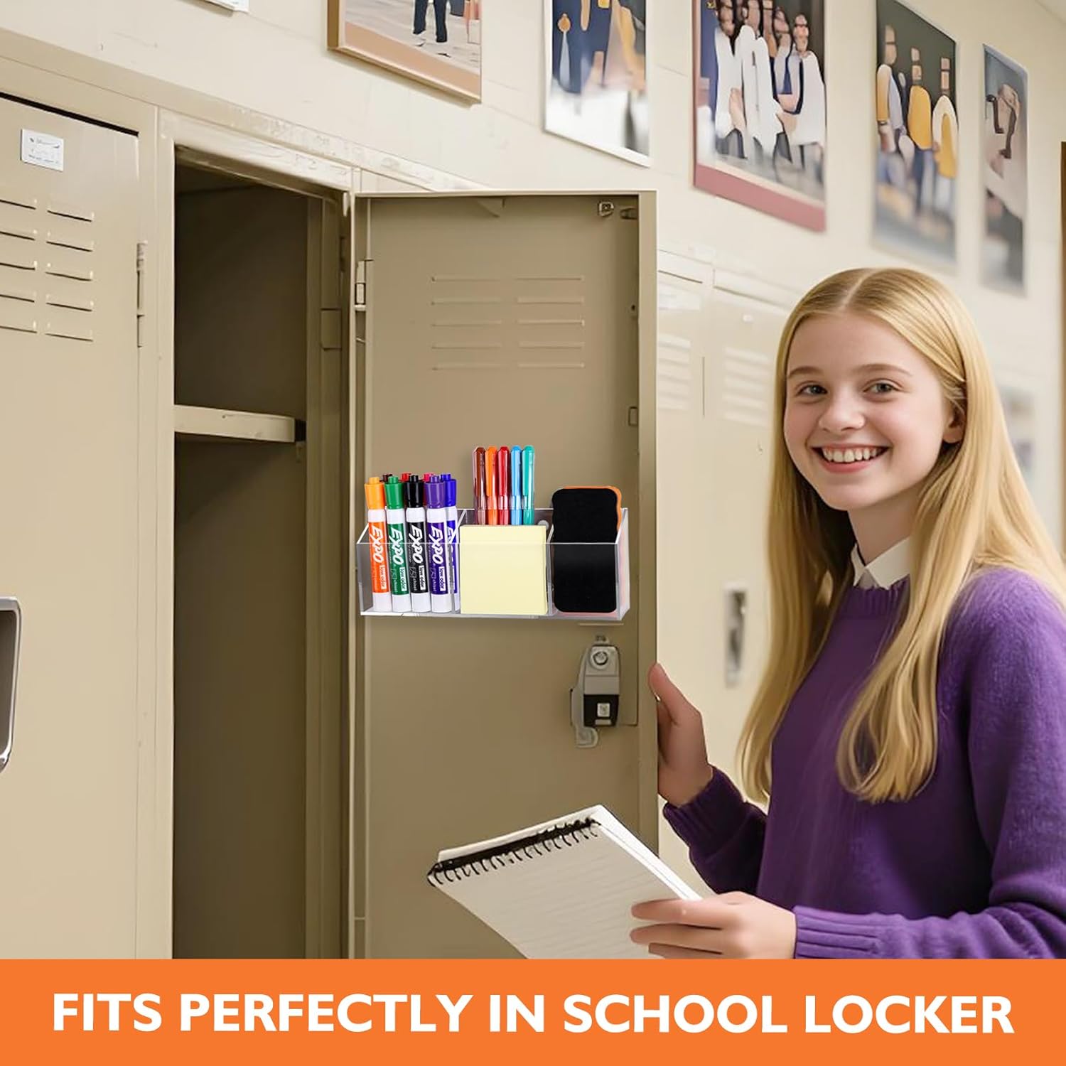 Magnetic Pen Holder Classroom Organization Acrylic Marker Holder for Whiteboard Refrigerator Locker Accessories Pencil Dry Erase Marker Basket (3 Compartments * 1)