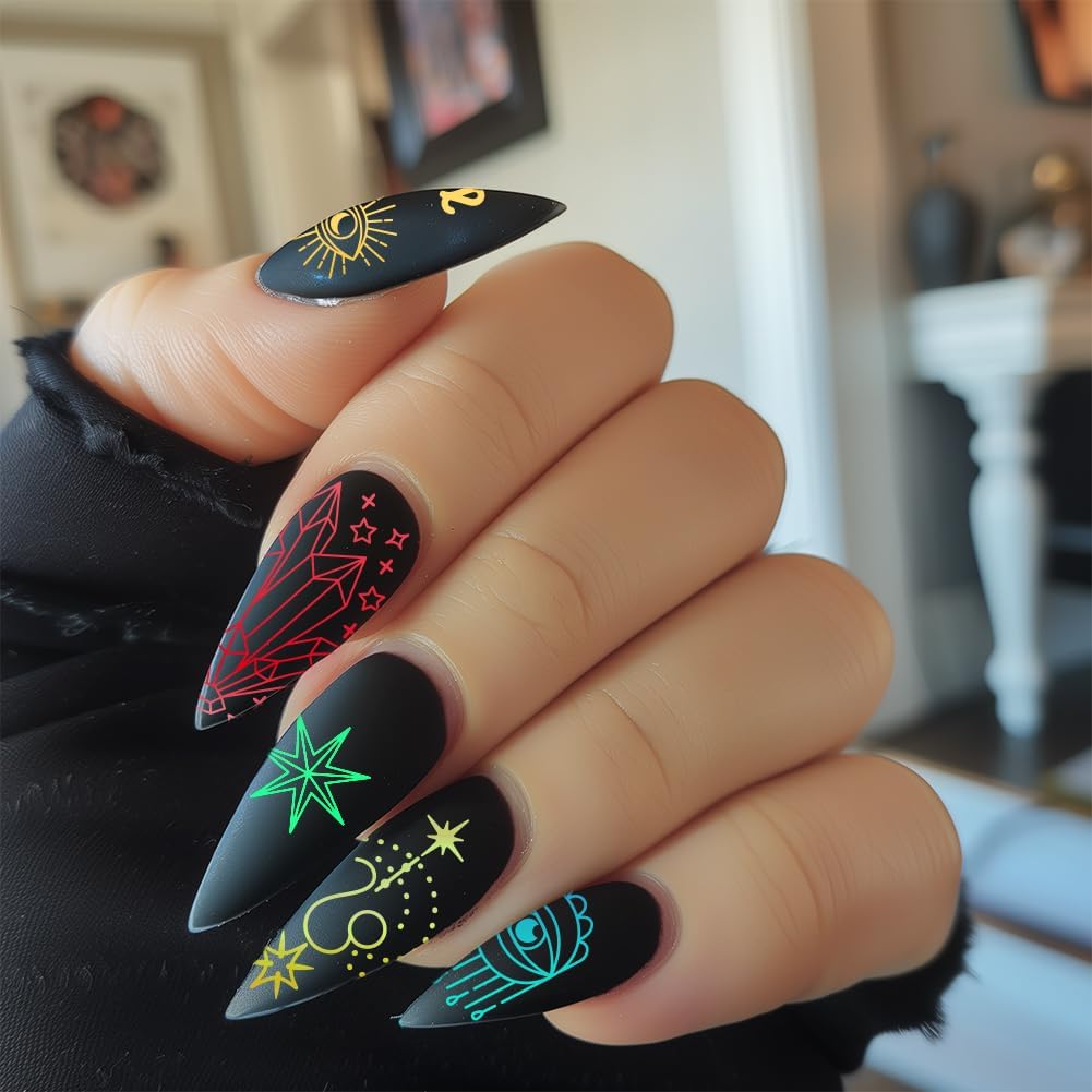 - Package Information: A total of 3 templates, 1 nail stamp and scraper, 12 Zodiac signs, sun, stars, moon, crystals, butterflies, eyes, tarot elements, randomly collocation, leading the nail fashion, the world at your fingertips jump