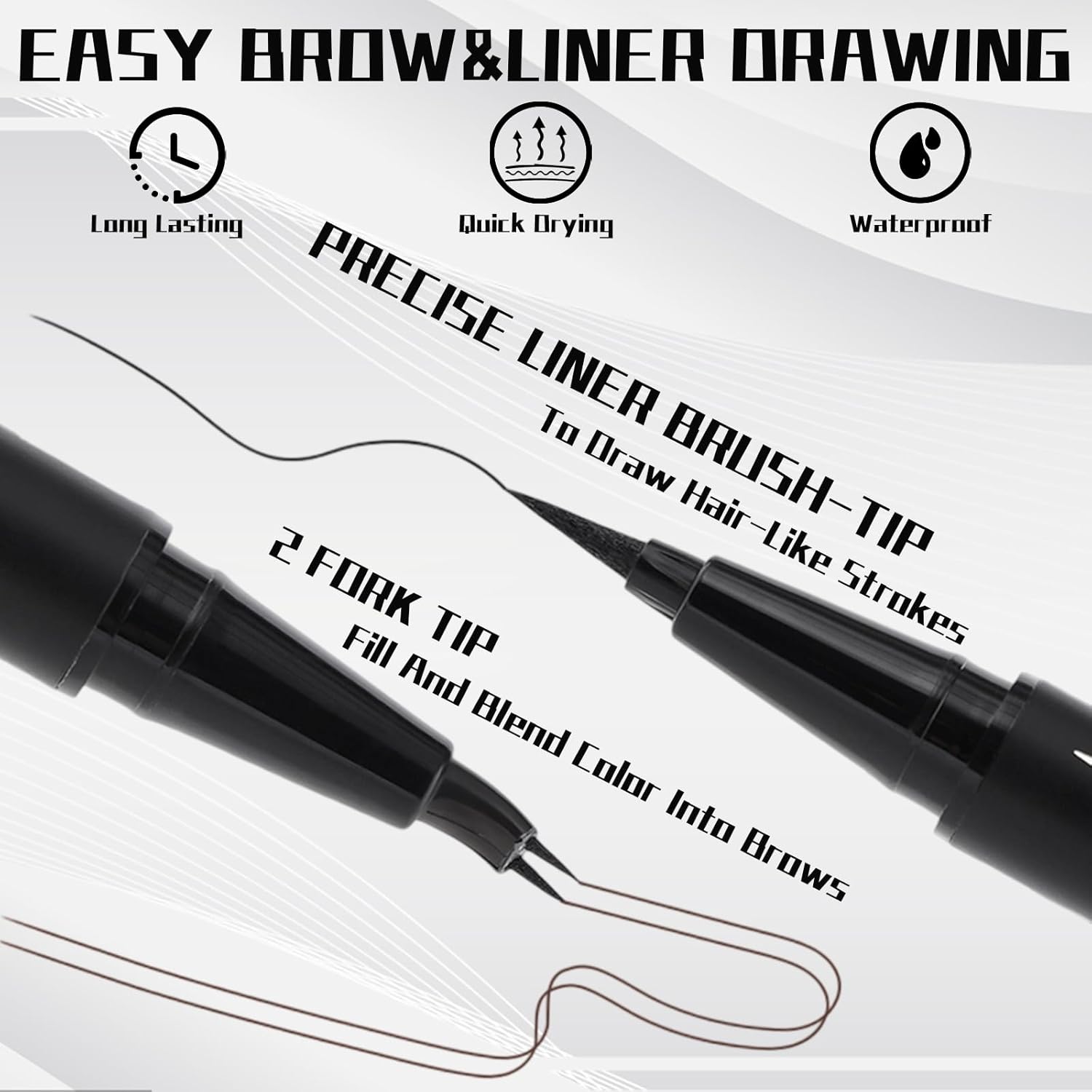 - 【Easy to Use】This 2 IN 1 Eyebrow Pencil & Eyeliner set is ergonomically crafted to fit the natural movement of your wrist. With a golden angle of 30°, it ensures effective anti - shaking, allowing for easy eyebrow drawing. The smooth - gliding ink flows evenly for the eyeliner provides a consistent line. The smooth application reduces the risk of tugging or pulling on the delicate skin around your eyes and ensuring a comfortable makeup experience. Whether you're a beginner or a makeup pro, this curved eyebrow pen provides a comfortable grip for precise depiction eyebrows and perfect eyeliner.