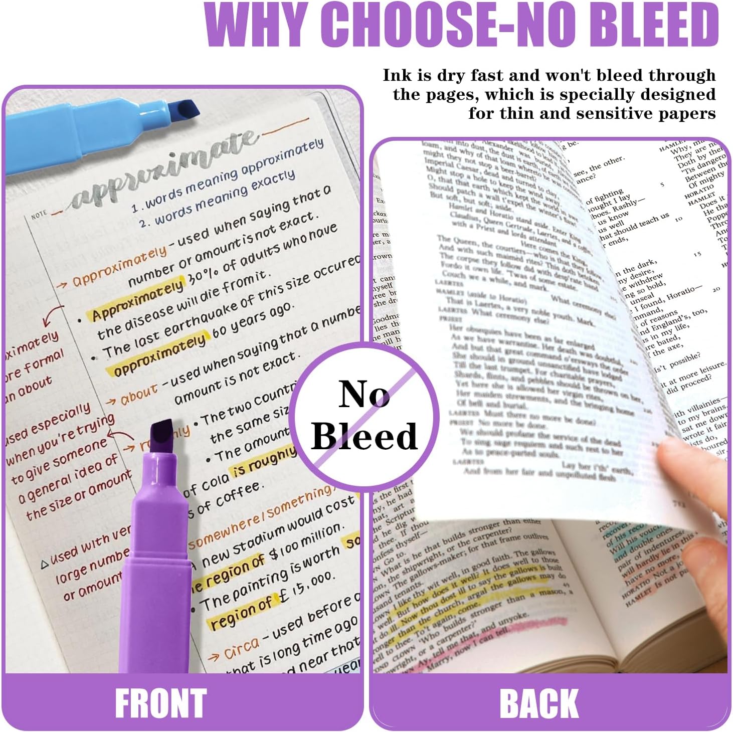 - NO BLEED HIGHLIGHTERS: The highlighters feature durable, quick-drying ink to prevent smears and smudges. The ink is also resistant to fading so your work stays clean and clear for longer. perfect for highlighting your scriptures, notes, journals, or any books you want to read with bright and vibrant colors.