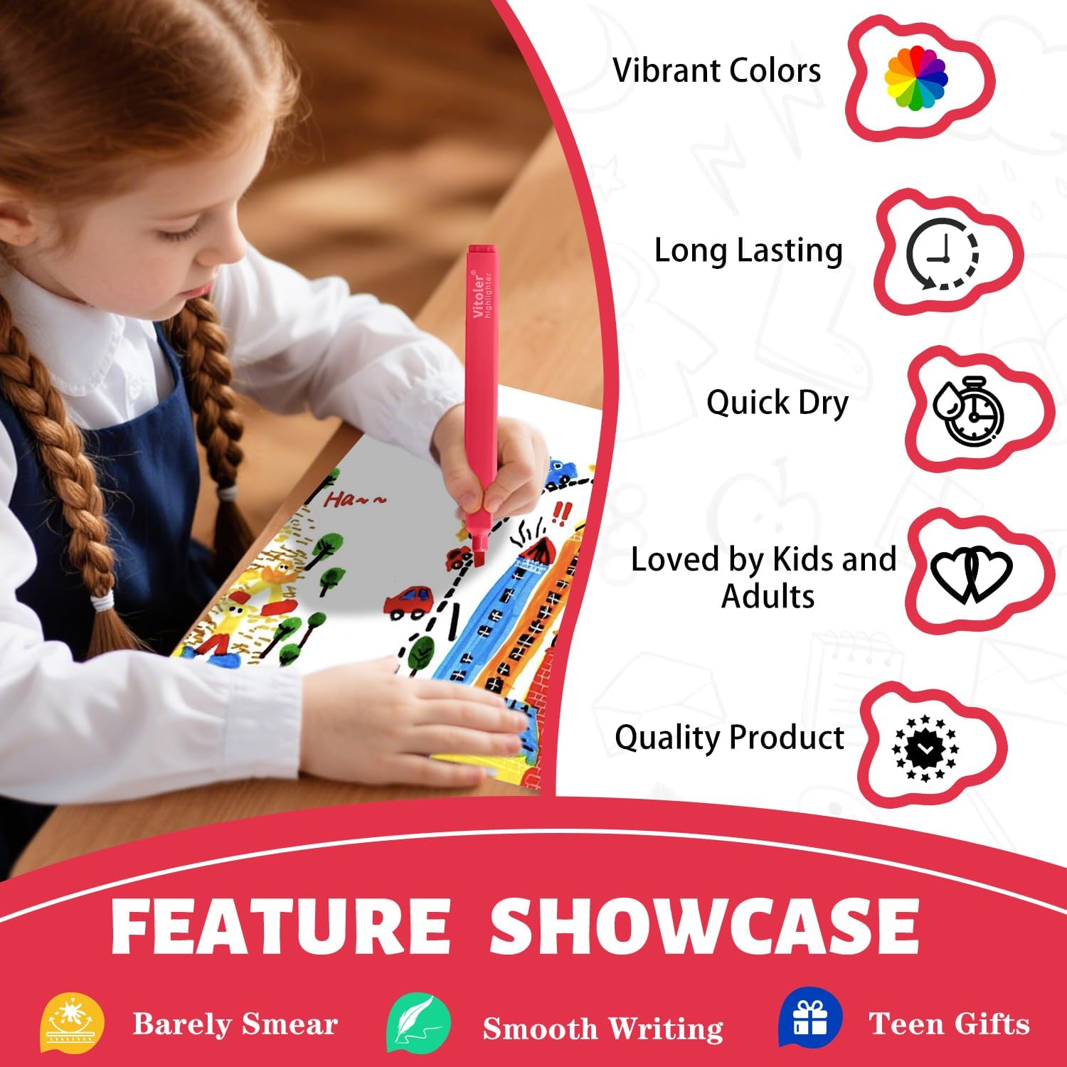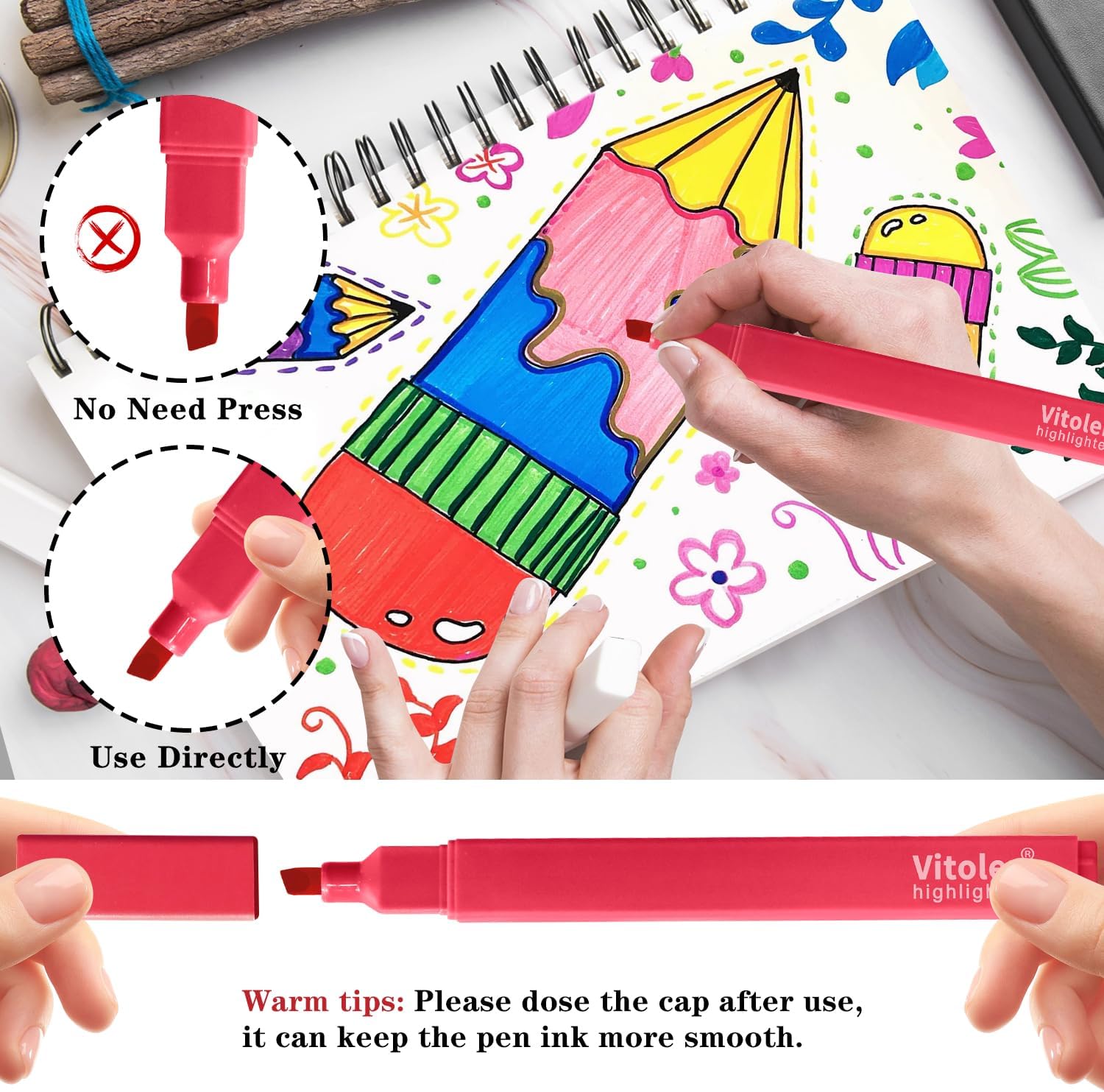 - These cute highlighters are suitable for school, college, home, office, even travel diary, schedule, work, study, notes, etc. They are also wonderful gifts for family and friends.