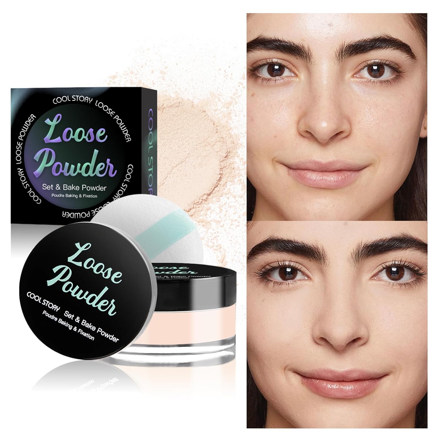 Loose Setting Powder, Bake Makeup Powder Full Coverage Matte Finish (Light, 6g/O.21oz)