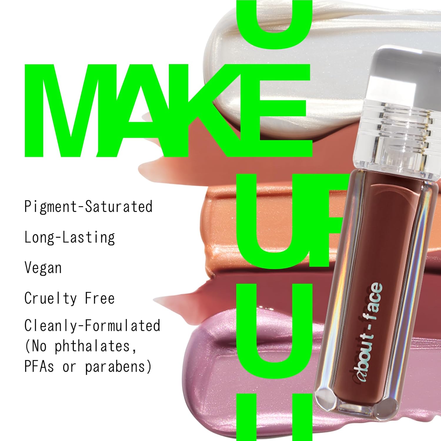 about-face Light Lock Lip Gloss Adore Me – Non-Sticky, High-Shine Lip Oil Gloss with Coconut Oil, Peppermint & Lavender – Vegan, Cruelty-Free, Clean Beauty – 0.21 oz (Chestnut)