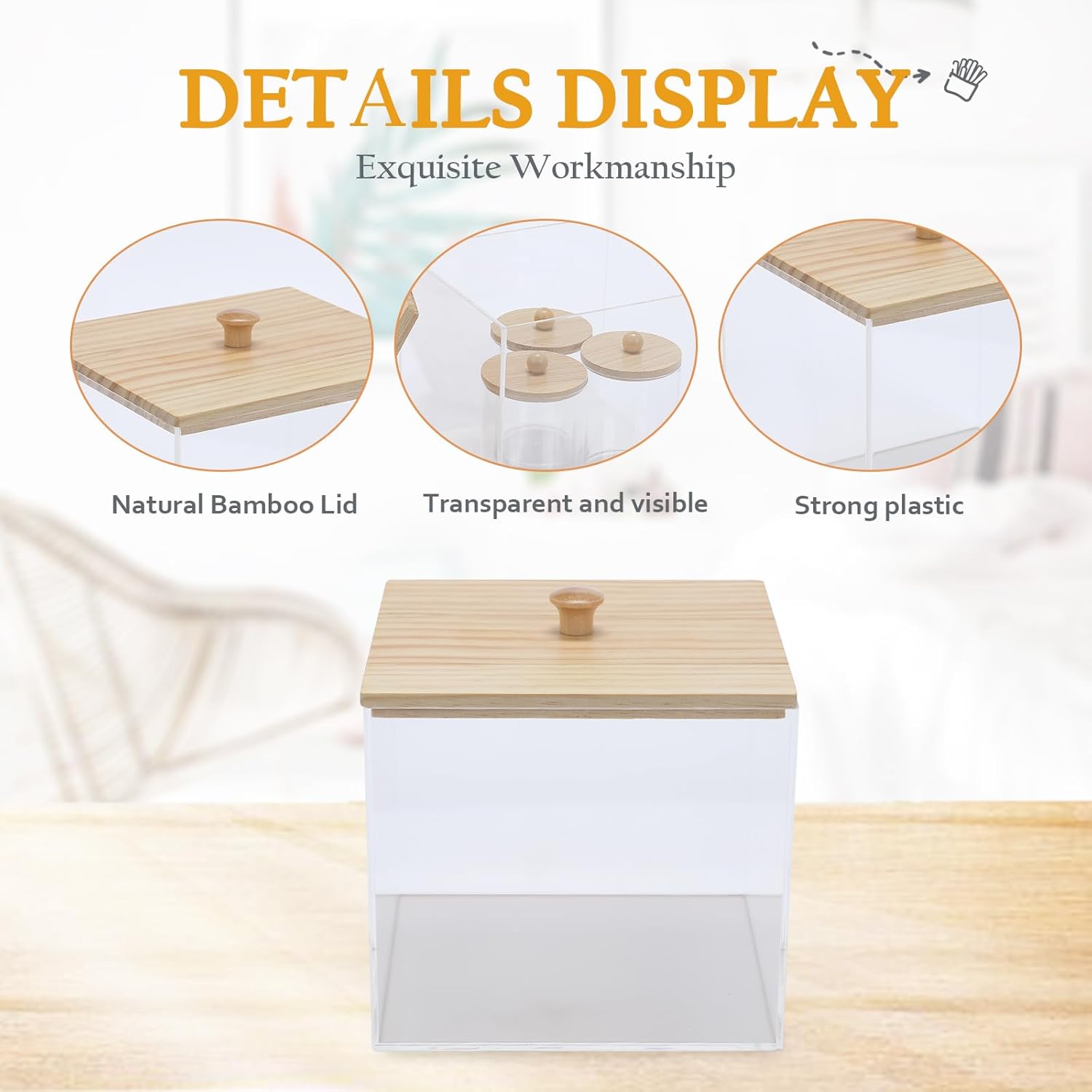 4 Pack Qtip Holder Dispenser with Bamboo Lids & Disposable Face Towel Holder Set, Clear Storage Bins for Facial Cloth, Vanity Makeup Storage Organizer, Bathroom Essentials Accessories Decor