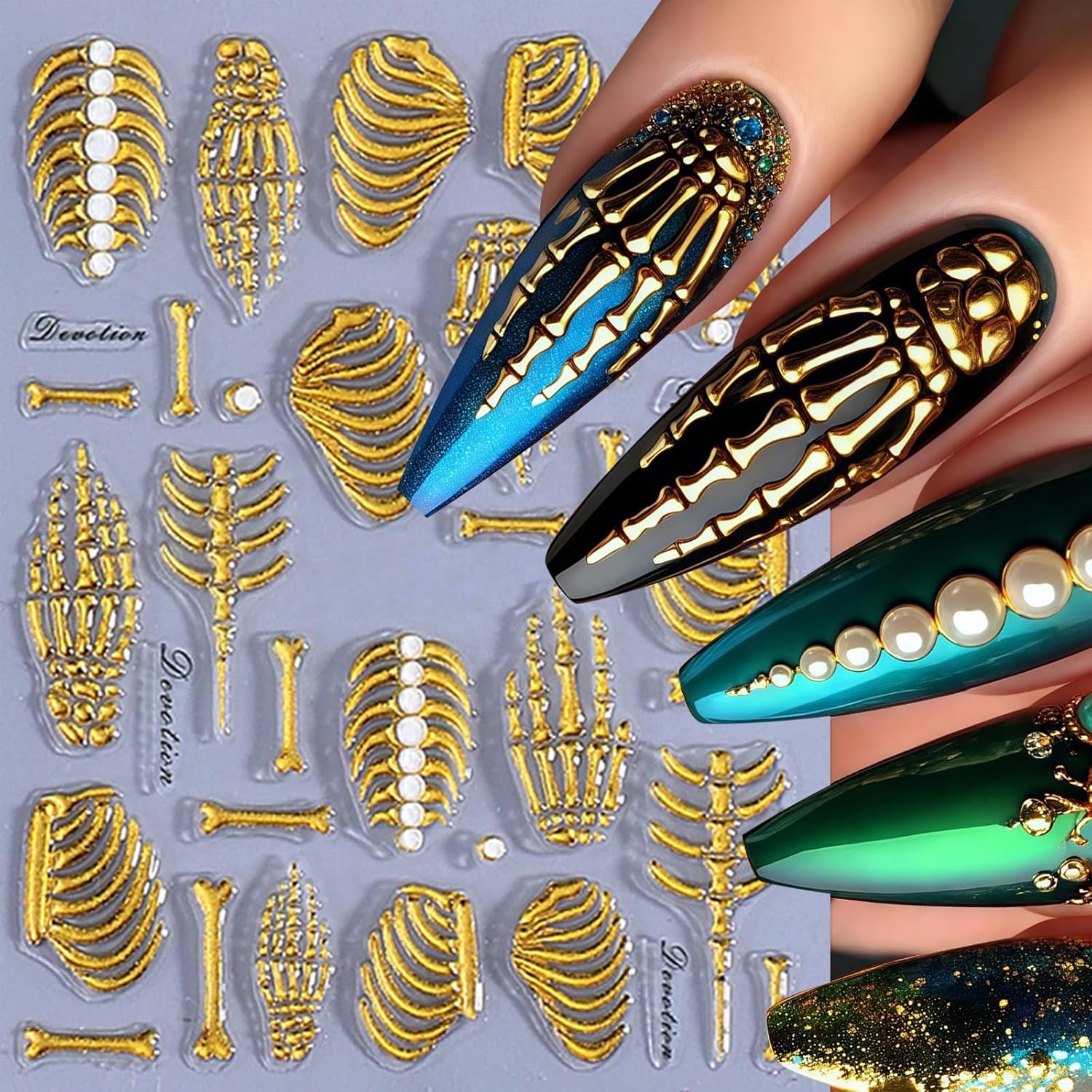 - Unique Nail Sticker Set: You will receive 3 sheets 5d embossed skeleton nail art stickers, different patterns are available for you to use and replace in your daily life, satisfying your rich imagination for nail DIY and bringing you different moods