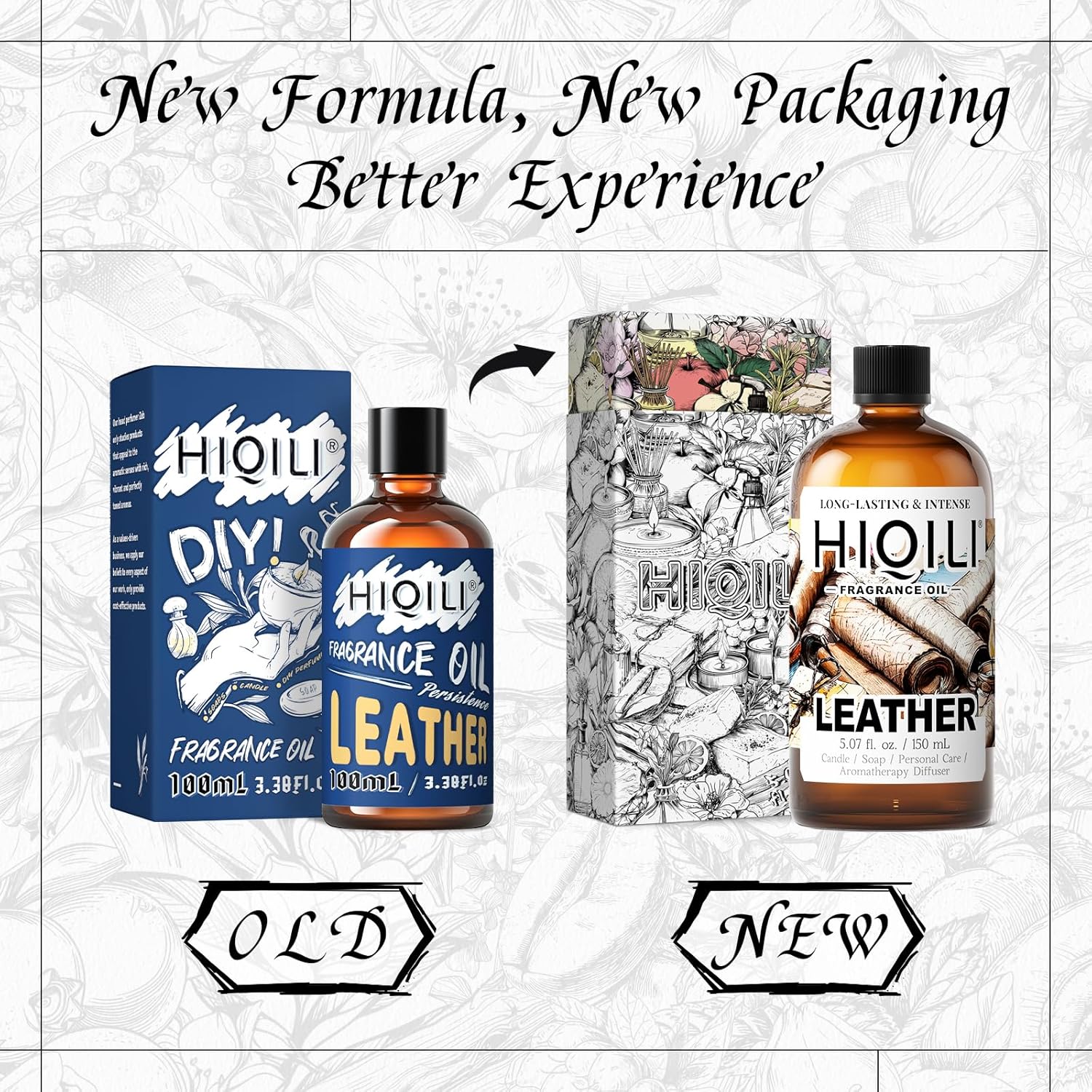 HIQILI Leather Fragrance Oil, Men's Scent, for Car Air Freshener Use, Soap, Candle, and Long-Lasting Perfume Making - 5.07 Fl Oz